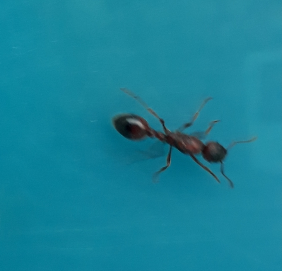 Myrmica sp.?, speravo Manica rubida, visto che qui ce ne sono tante. il colore é uguale a quelle del post id operaie che ho scritto alcuni giorni fa, rosso fino ad un terzo del gastro e del capo, poi scura e con la lente si vedono bene dei frammenti d'ala. Girovagava per il piazzale e confrontandola con le altre, é uguale, solamente tre millimetri piu grande