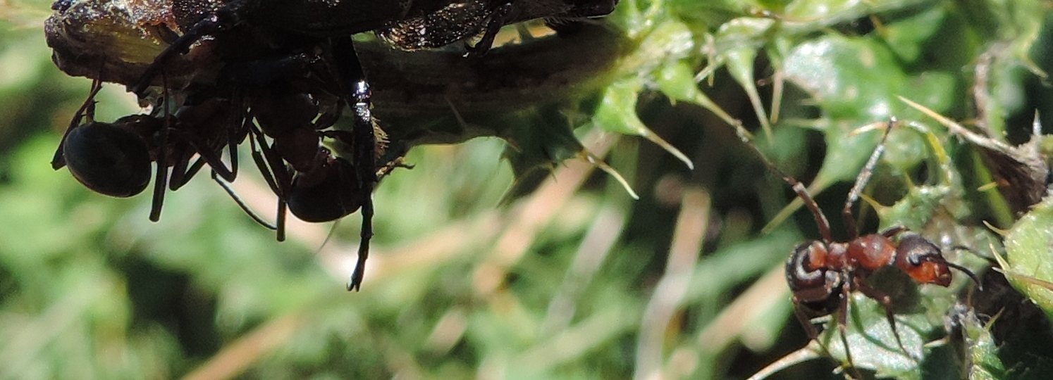 Chiedo scusa in anticipo per le foto penose, mi rendo perfettamente conto che per specie così difficili servono immagini molto più dettagliate, visto che qui non si vede quasi nessuno dei caratteri citati nella chiave per questo genere, ma magari è possibile ipotizzare qualcosa su base fenologica. Le ho fotografate sopra Frais di Chiomonte (TO) il 12 agosto 2016, a circa 2300 metri di quota, quello che mi ha colpito è che mi trovavo già sopra il limite della vegetazione arborea, dove non pensavo di incontrare queste formiche, che stavano sugli steli dei fiori e camminavano anche tranquillamente sopra le Cetonie che si nutrivano...