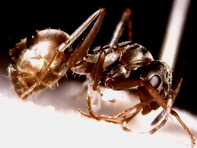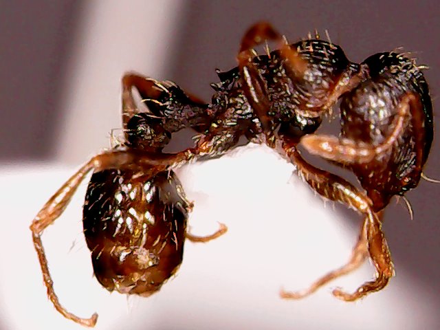 La prima è un'operaia di Tetramorium del complesso caespitum. La seconda, Formica cunicularia