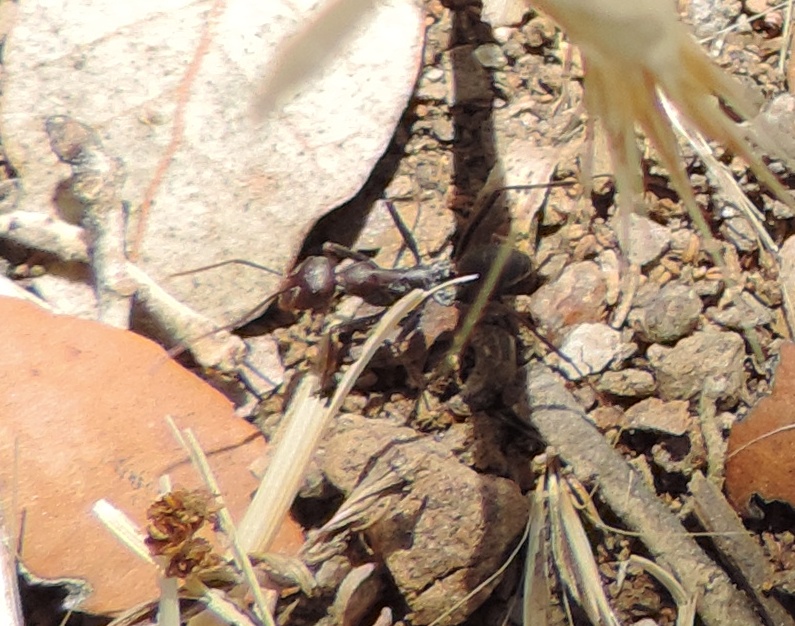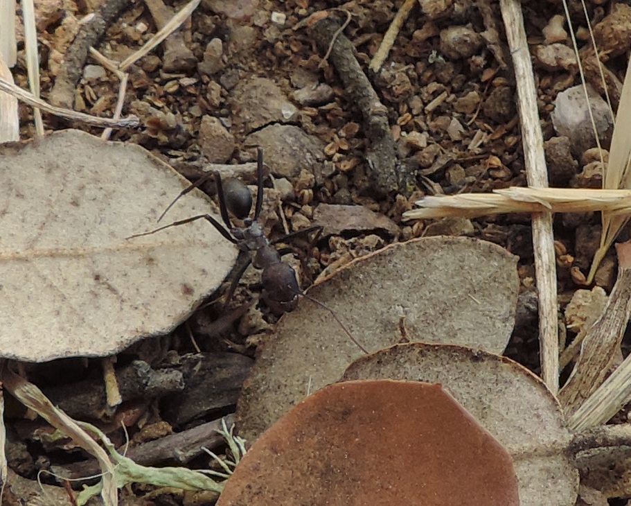 Fotografata anche questa il 29 luglio 2017 in ambiente di uliveto nel parco di Cornalvo, poco distante dalla città di Merida, in Estremadura. Non riesco a capire se si tratta di un’altra Camponotus cruentatus oppure se è una specie diversa, come sembrerebbe indicare la colorazione… Purtroppo non ho foto migliori