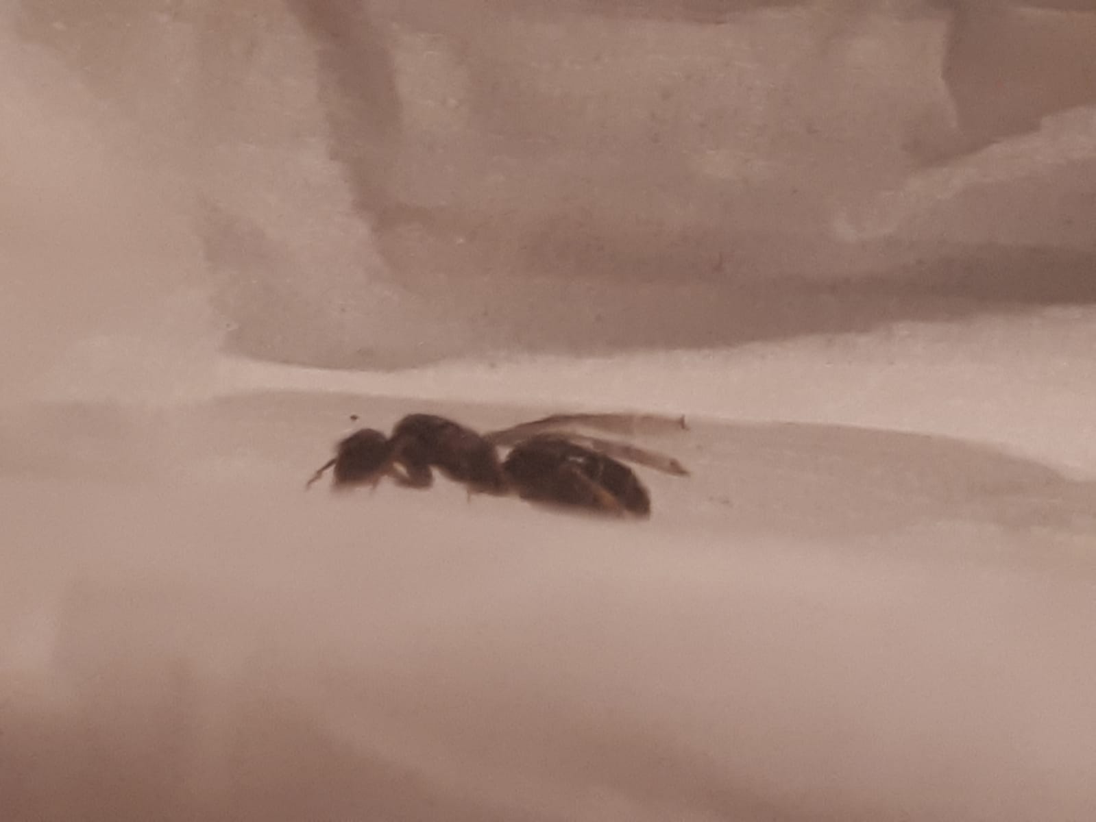 Ho trovato questa regina al lago di Como alle 18:00. Mentre scrivo si è dealata le ali maggiori ma non ho la più pallida idea di cosa possa essere. Ha le zampe gialle ed è di colore beige.