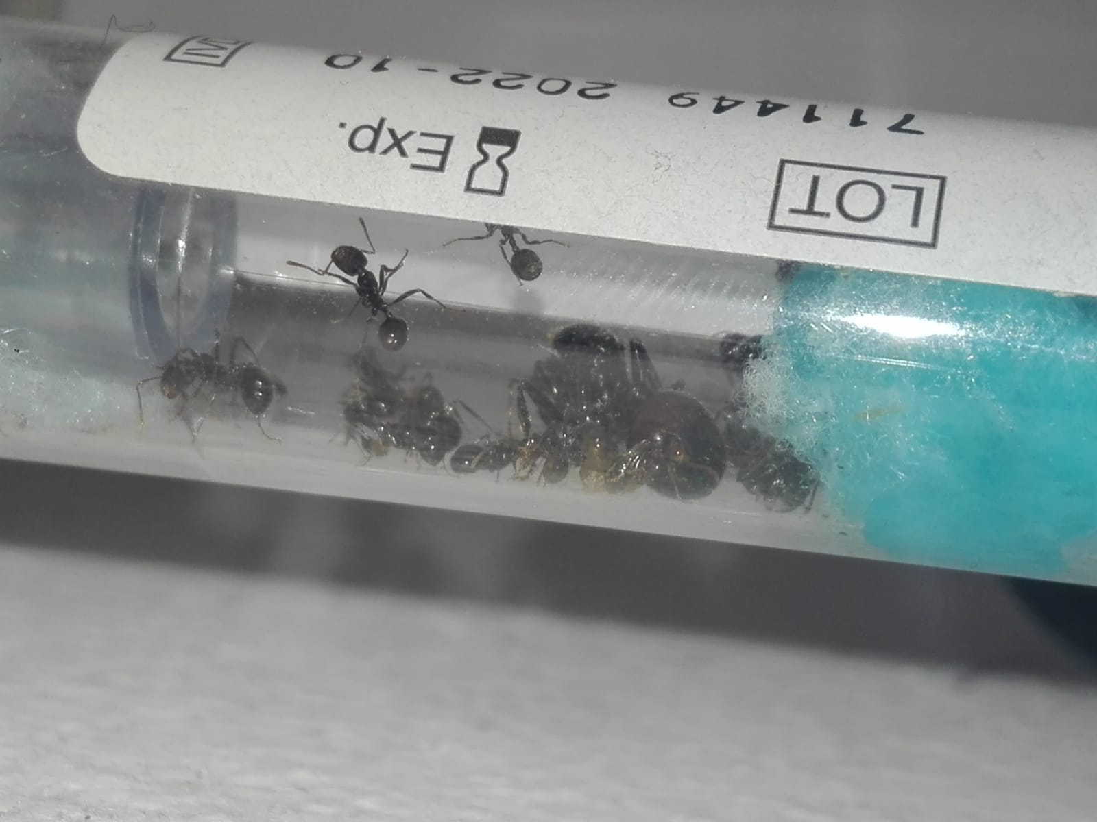 Salve! premetto che l'ultima identificazione è andata a buon fine. La colonia cresce anche se fa un caldo pazzesco qui a Milano. Ad oggi la mia prima colonia conta una 30ina di operaie, alcune major. (foto1)A quale numero mi consigliate di cambiare formicaio? sto pensando ad uno verticale, poi vedrò.