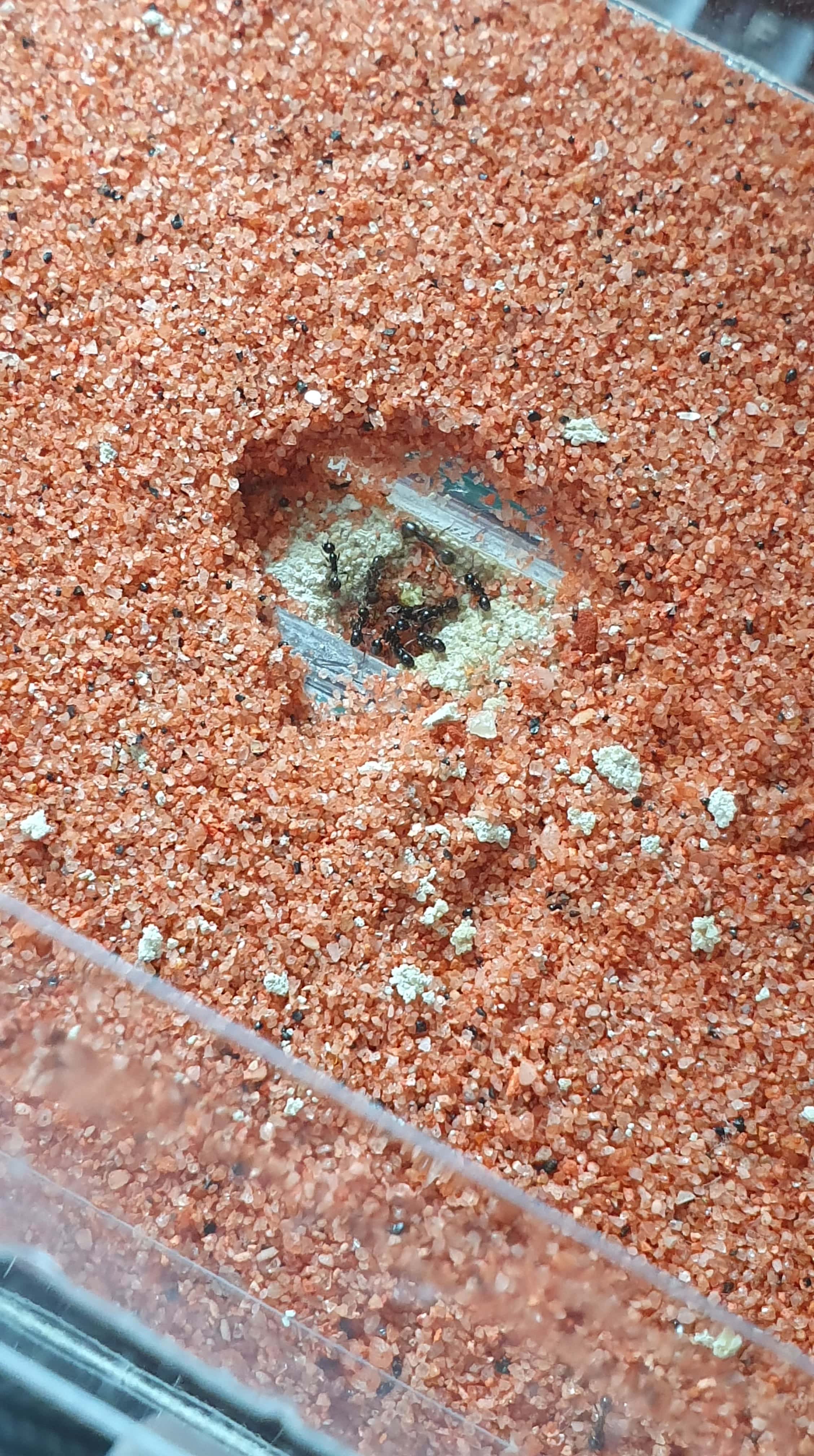 Dalla boccetta in cui la colonia era le ho trasferite nella teca/formichiera.