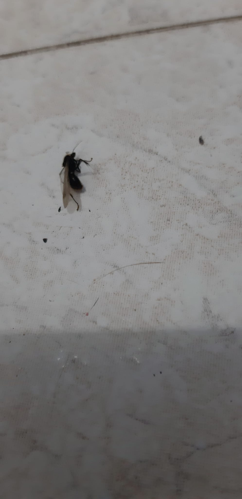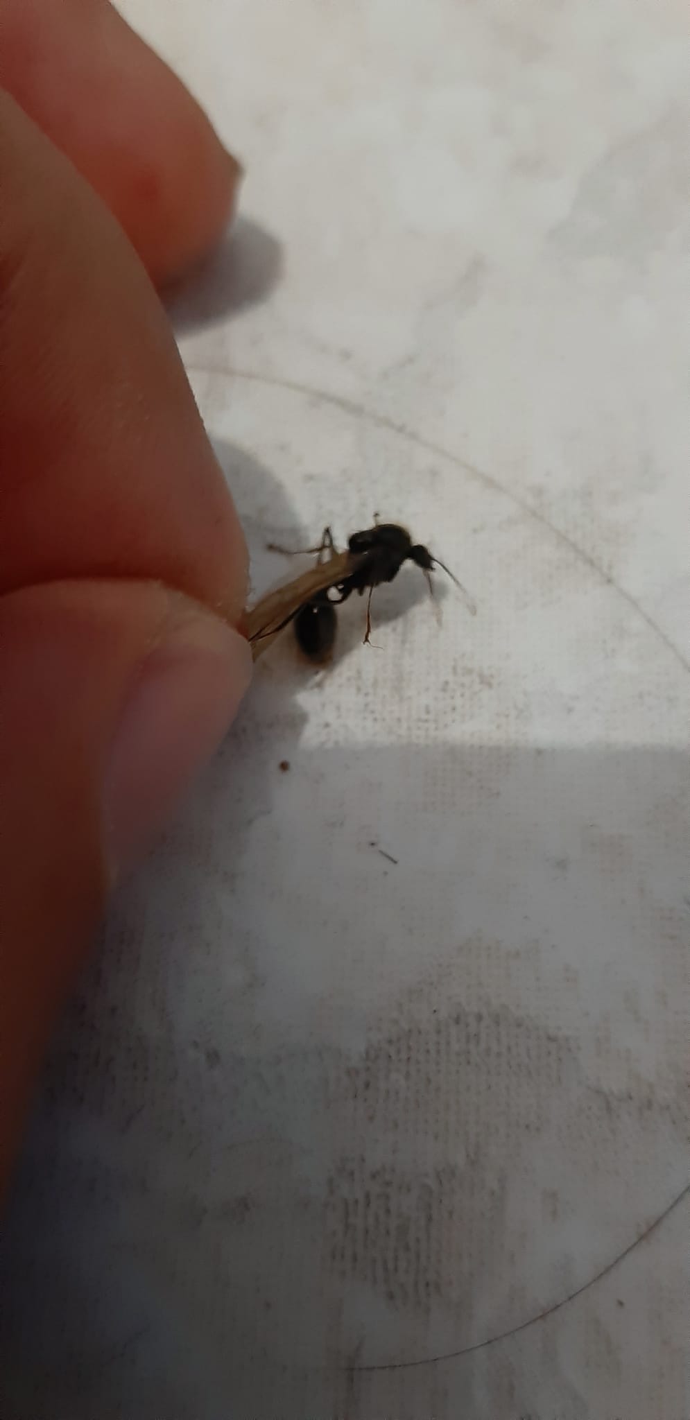 Caratteristiche formica: ali gialle e lunghe 9 mm con macchie nere al centro dei lati, corpo tutto nero e peli sull'addome(la parte di sotto della punta dell'addome era diviso in tanti anelli stretti e giallastri)il corpo è lungo 9 mm precisi, le antenne lunghe 3 mm, il torace alto 2mm e la testa, lunga e larga, 1 mm, zampe posteriori 4-5mm