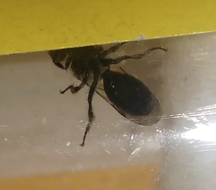 Potrebbe essere effettivamente un maschio, dalle foto non è chiaro, ma non è una formica. Credo possa essere un imenottero Apidae Halictinae.