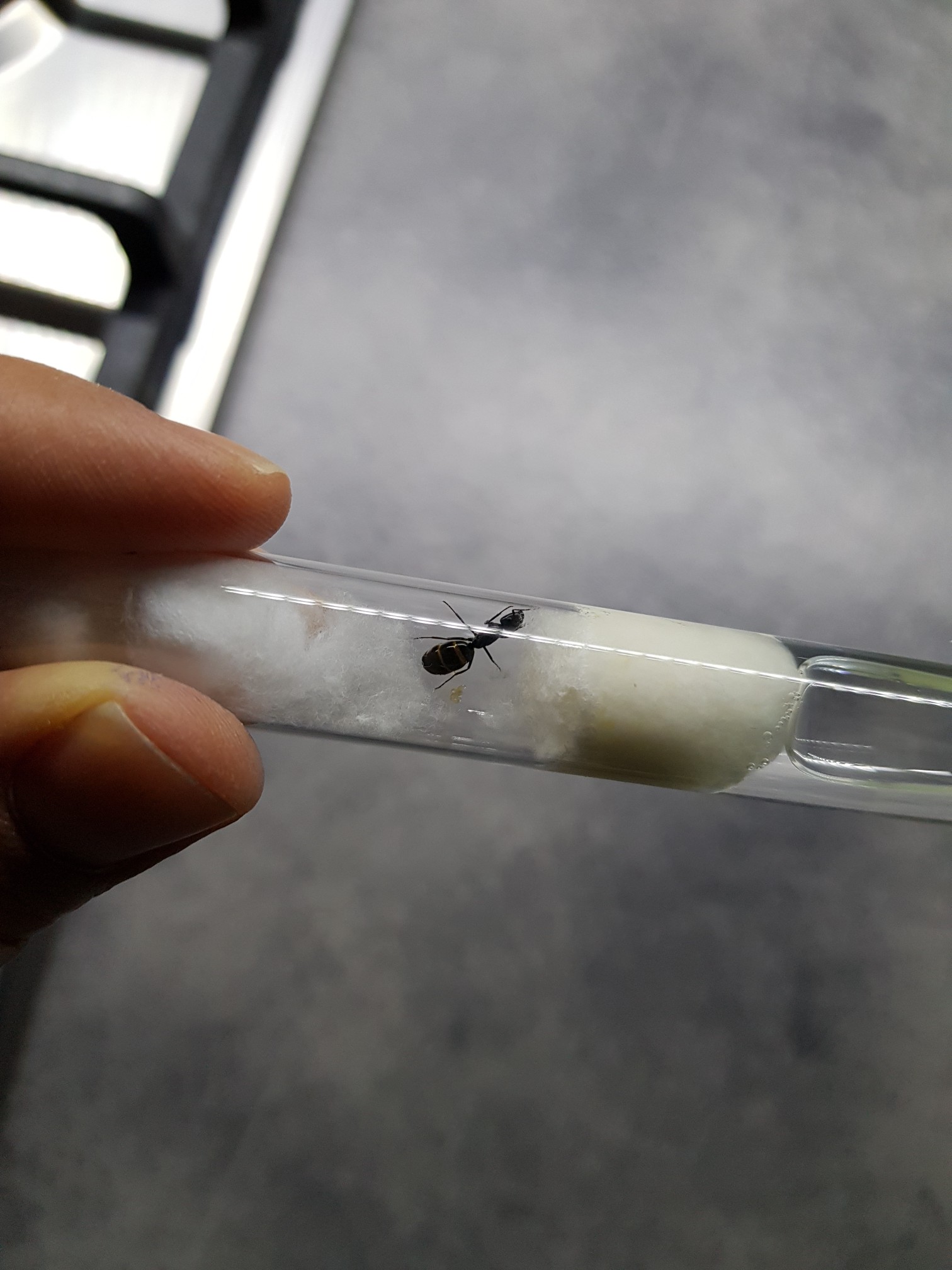 Aethiops, fallax e piceus erano le 3 a cui ho pensato...alla fine dovrò attendere la nascita delle operaie x capire con esattezza. Secondo le info che ho la mia regina è più grande delle regine piceus e fallax, e più piccola delle regine aethiops. Ad osservare bene mi sembra di vedere due righe sull'addome tendenti al giallo e una leggera peluria...ma se la vedi è nera lucida.
