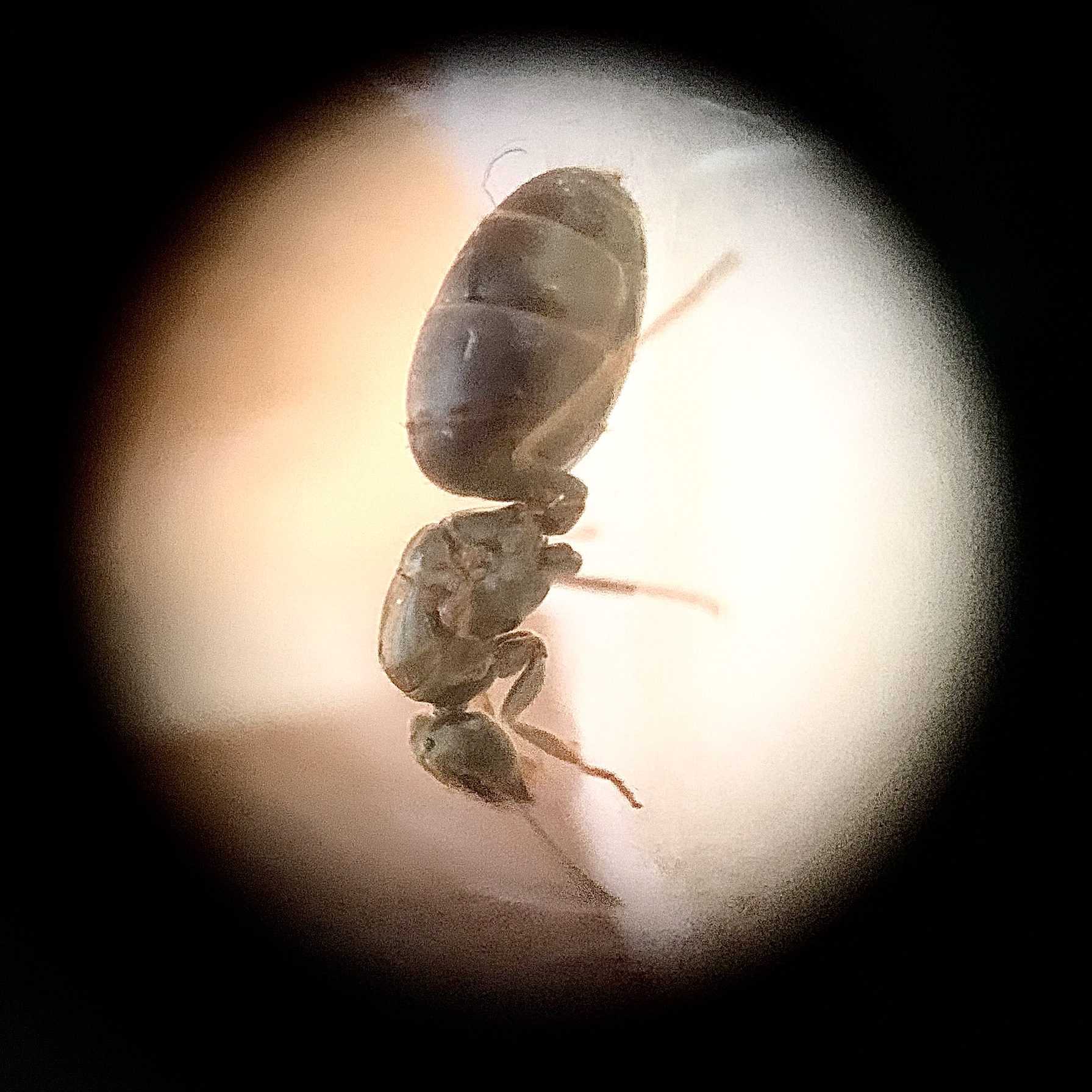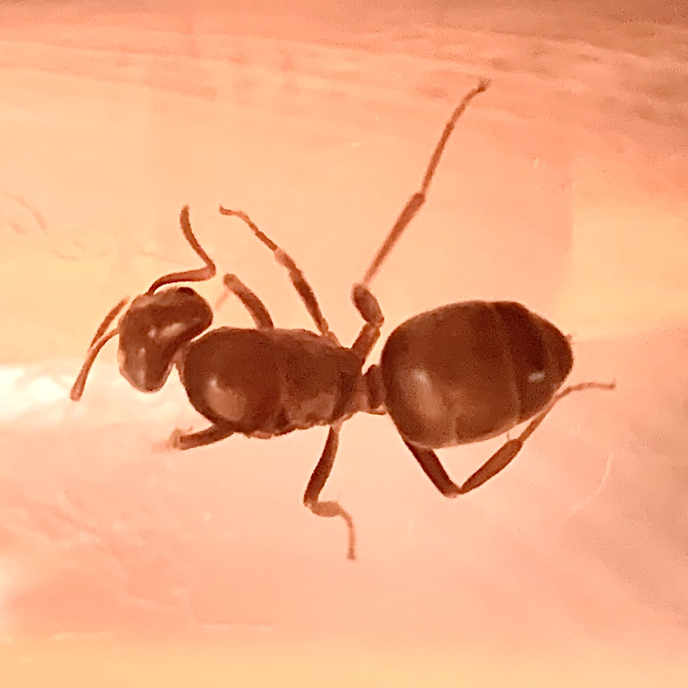 Ho preso due formiche, ma una non sta bene, ho fotografato l'altra. Vi chiedo già scusa per la qualità delle foto, perché non ho i mezzi per fotografare, non ne sono capace, e non mi appassiona. Migliorerò anche su questo.
