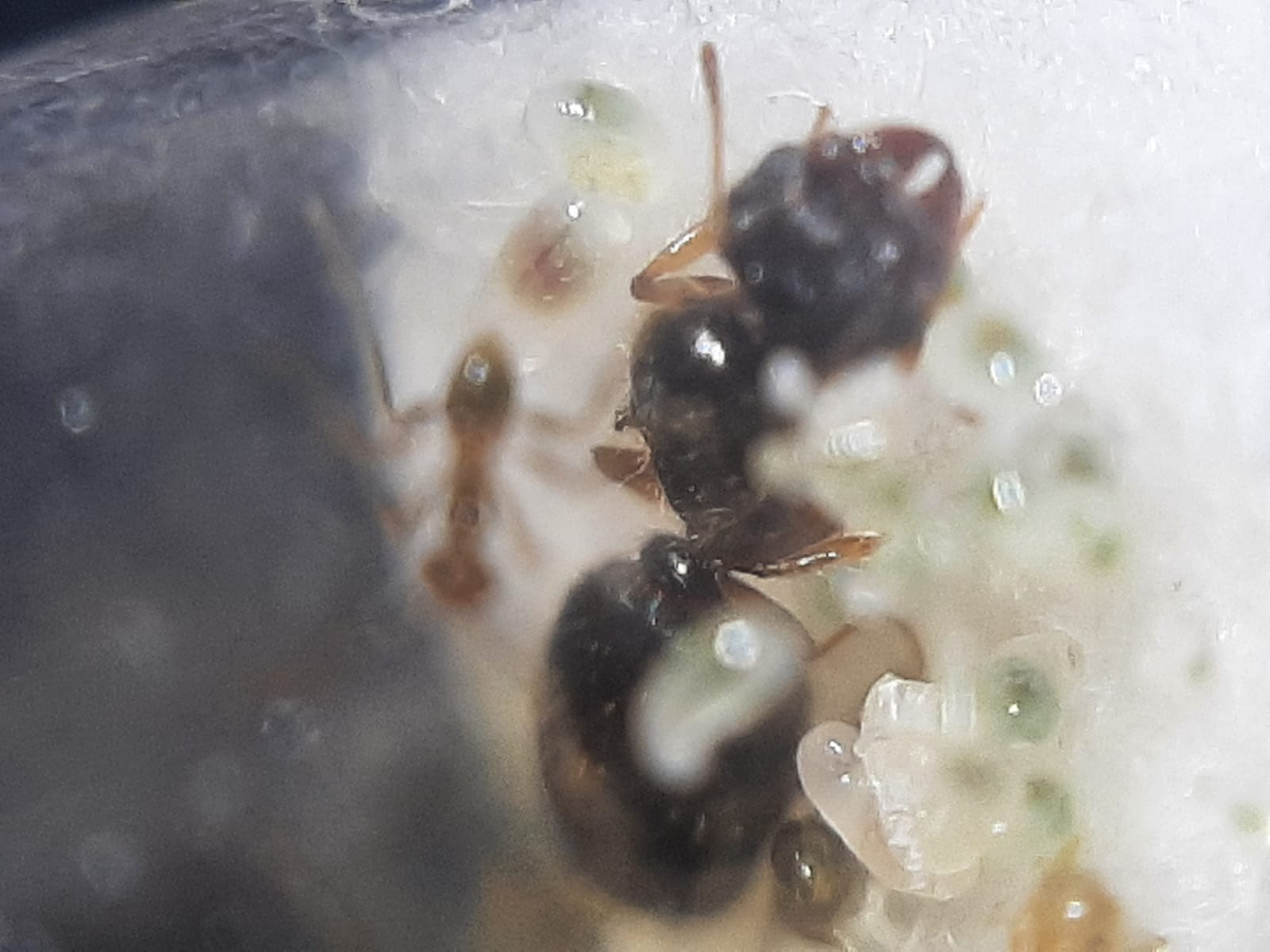 Regalata da un mio conoscente, che sapendo i miei disagi con le Pheidole mi ha mandato questa. Ha le stesse dimensioni di una Pheidole pallidula per intenderci, ma il colore e' diverso. Quante specie esistono di Pheidole in italia? Questa qual'e'? Grazie