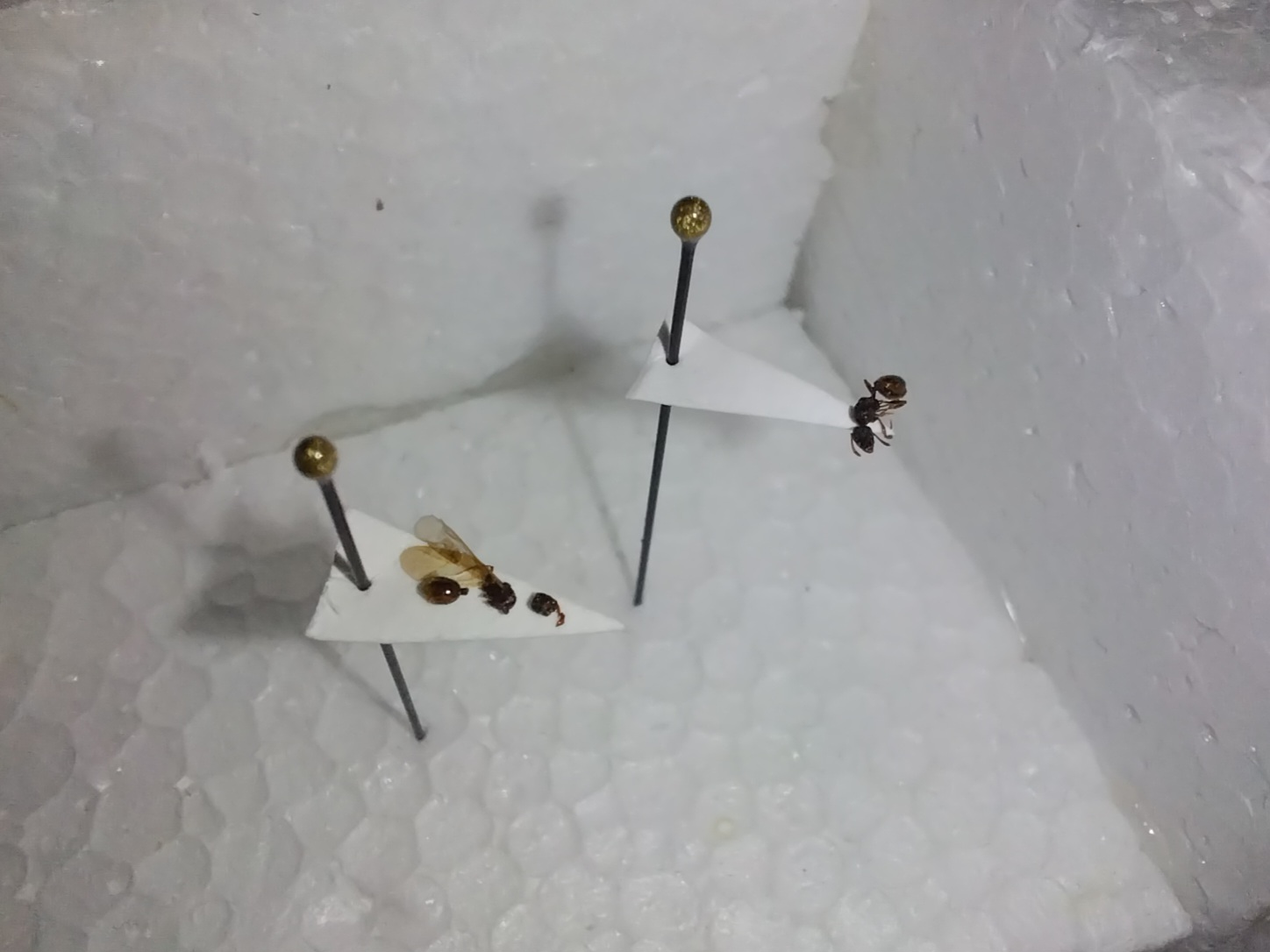 Al momento mi è rimasto un solo campione intero e una regina alata che dopo averla tirata fuori dall'alcool e aceto si è tritata. Avevo anche qualche maschio ma si sono tritati anche loro.