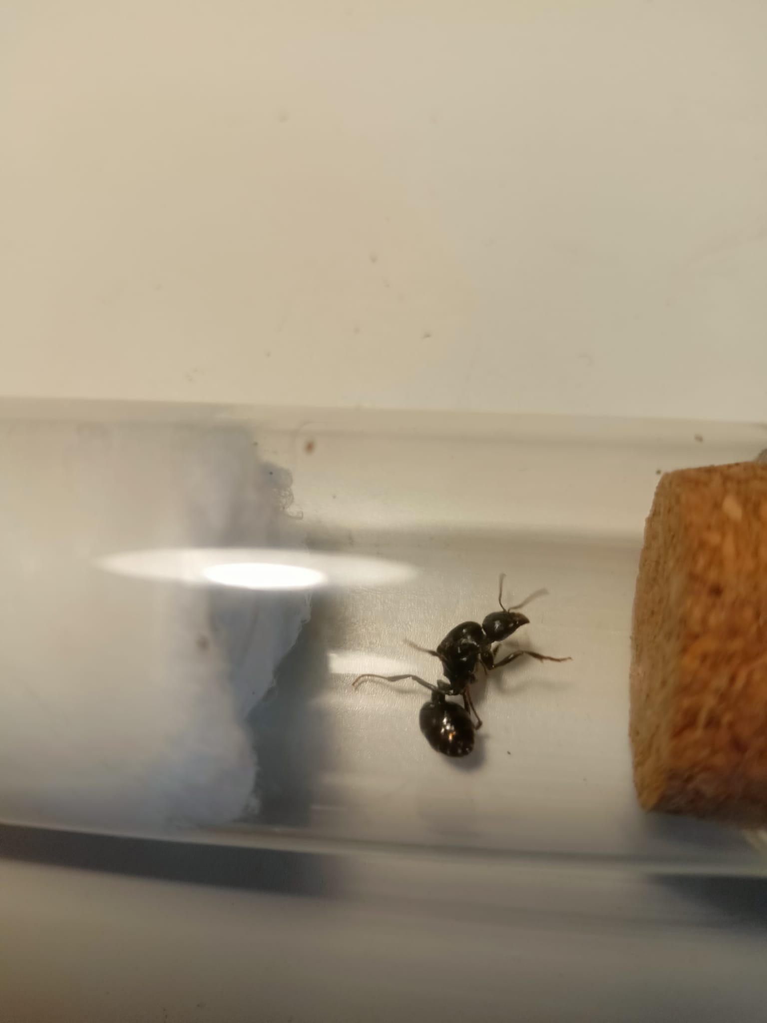 Messor capitatus. Se dal tappo passa l'aria tutto apposto. Se non passa aria metti un tappo di cotone.