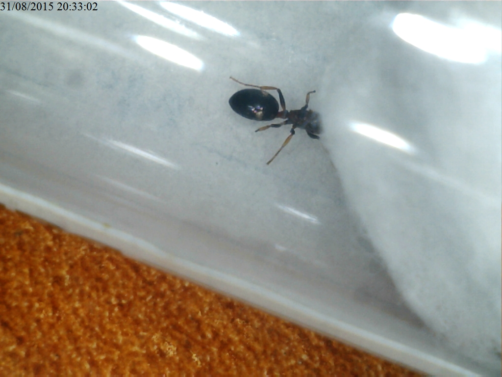 Stasera, ero andato a cacciare vicino ad un albero. C'era una formica, che non so dire se regina od operaia: c'era solo lei... Purtroppo mi sembra la Dolichoderus quadripuntactus. Purtroppo perché non ho il sughero...
