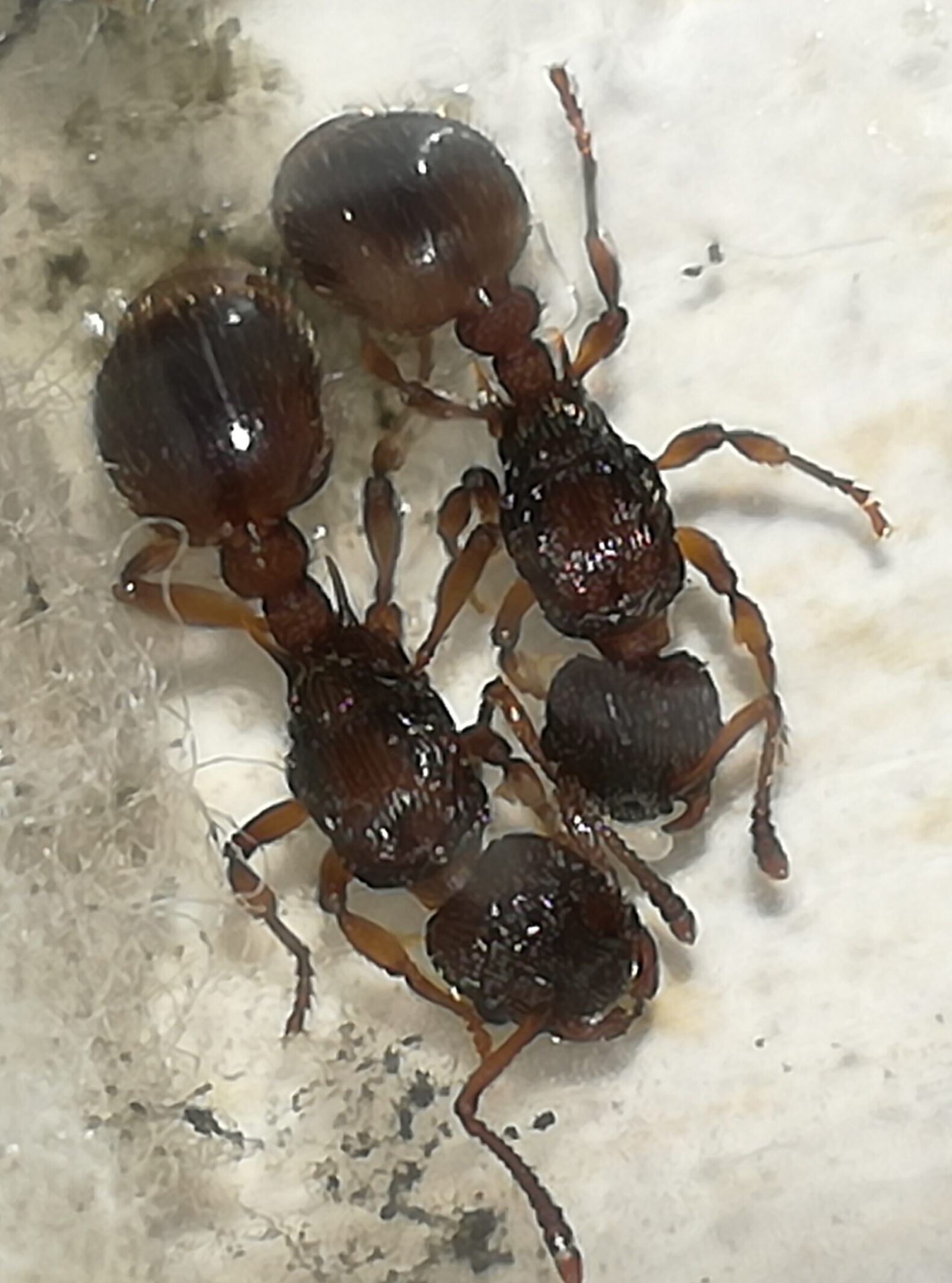 Ma sei sicuro? È IDENTICA alle altre regine di Myrmica rubra, le ho messe in provetta insieme, per un attimo si sono annusate, poi improvvisamente la hanno attaccata, ora la tengo in una provetta separata. È solo 1mm più grande, ti allego una foto delle mie regine di Myrmica rubra, almeno vediamo se almeno le mie regine sono effettivamente di Myrmica rubra