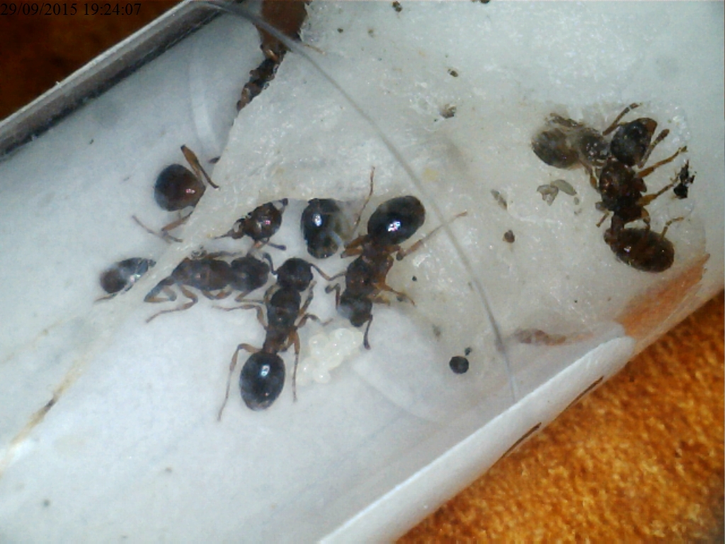 Le regine non sono illuminate, per contrasto ho fatto risaltare le uova. Metto un veloce scatto della covata di queste Myrmica sp. per ora particolarmente attive!