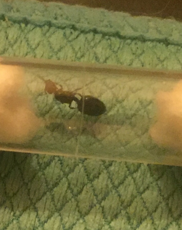 Mi scuso già per la qualità delle foto, ma avendo già sistemato in provetta e in un posto tranquillo la regina non vorrei disturbala per fare altre foto, sia chiaro se c'ho di cui dispongo non sarà sufficiente per l'identificazione mi troverò costretto a metterla fuori provetta per farne di migliori.