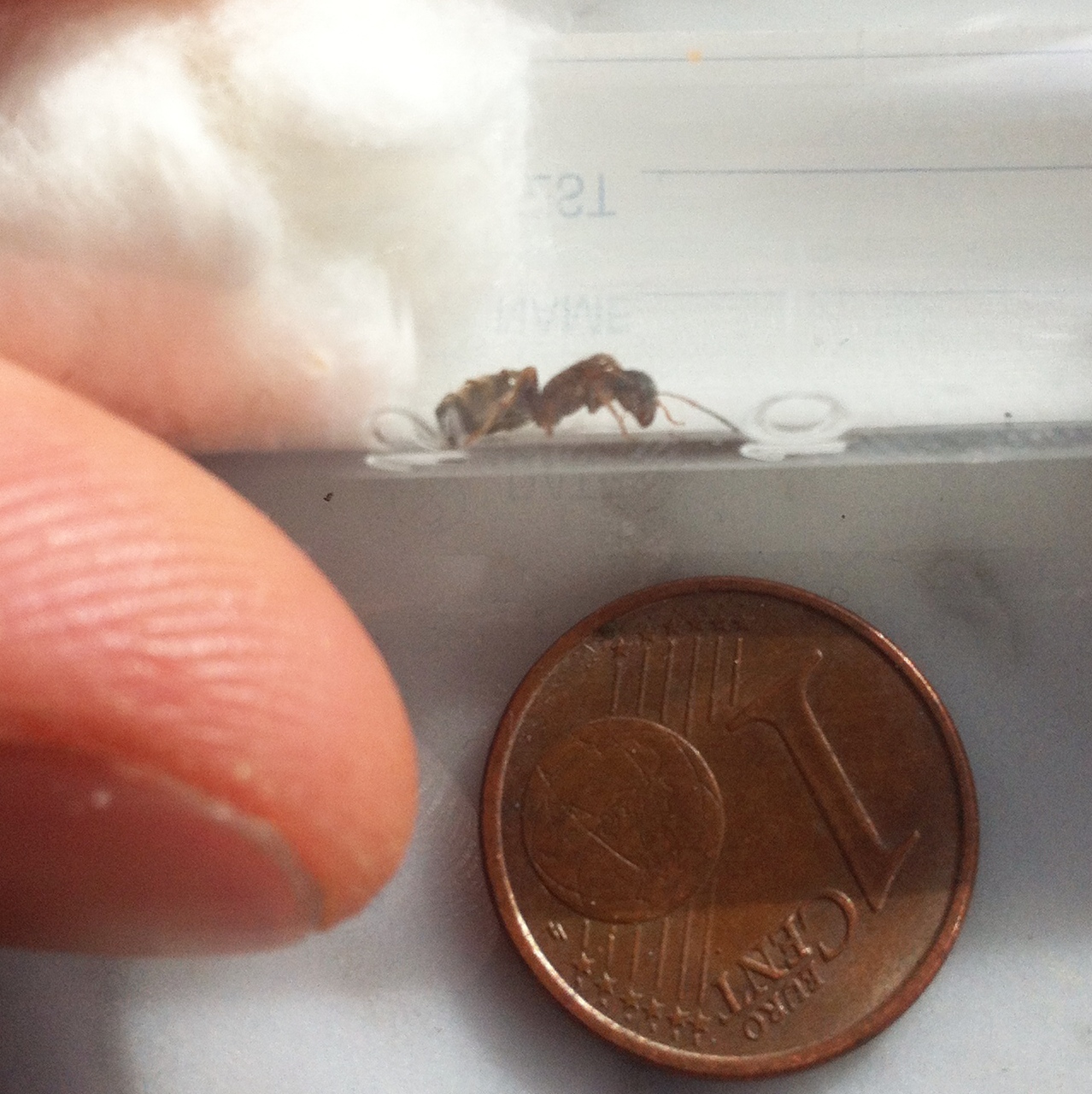 seguirò il tuo consiglio. Vediamo come si comporta. Al massimo ritornerò nel luogo in cui l'ho trovata per cercare delle operaie. Chissà... non sarà un lavoro facile, non ho mai cercato operaie di Lasius emarginatus.