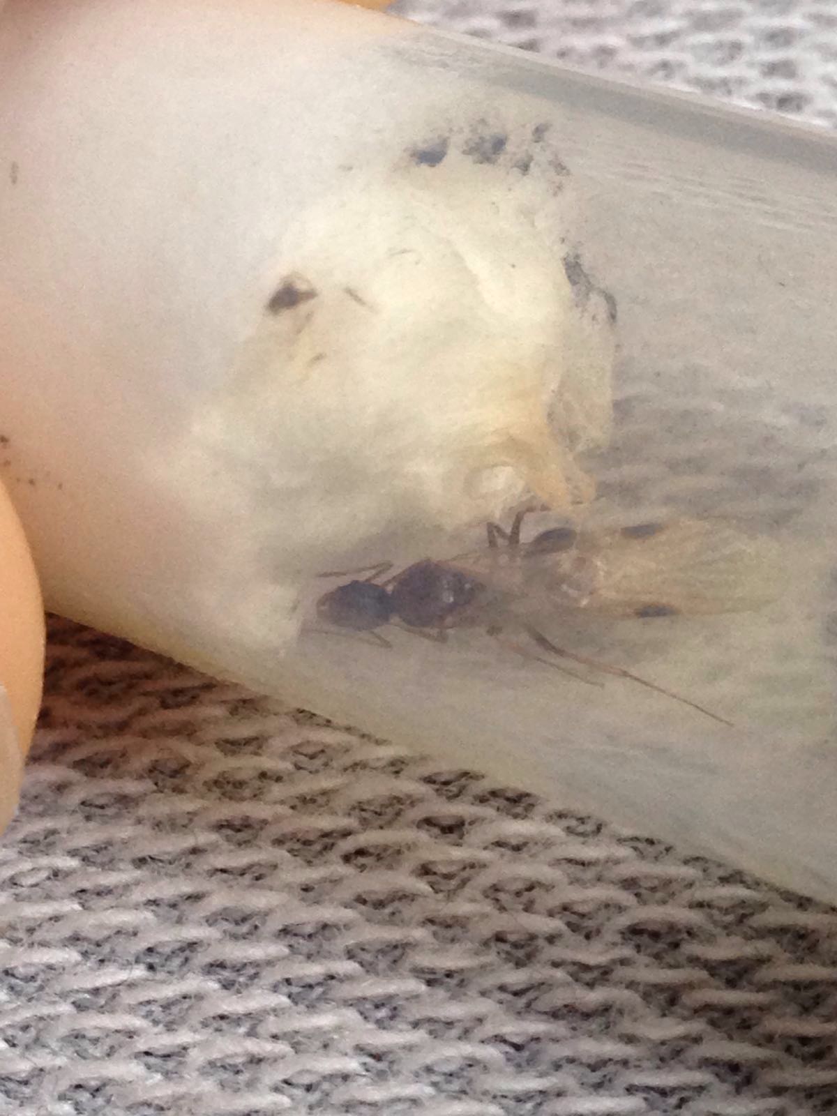 Purtroppo ho la vaga impressione che questa regina non produrrà niente, sia perché ancora alata, sia perché ho il sospetto che possa essere una specie che non si accoppia in sciamatura e che il ritrovamento sia stato occasionale.