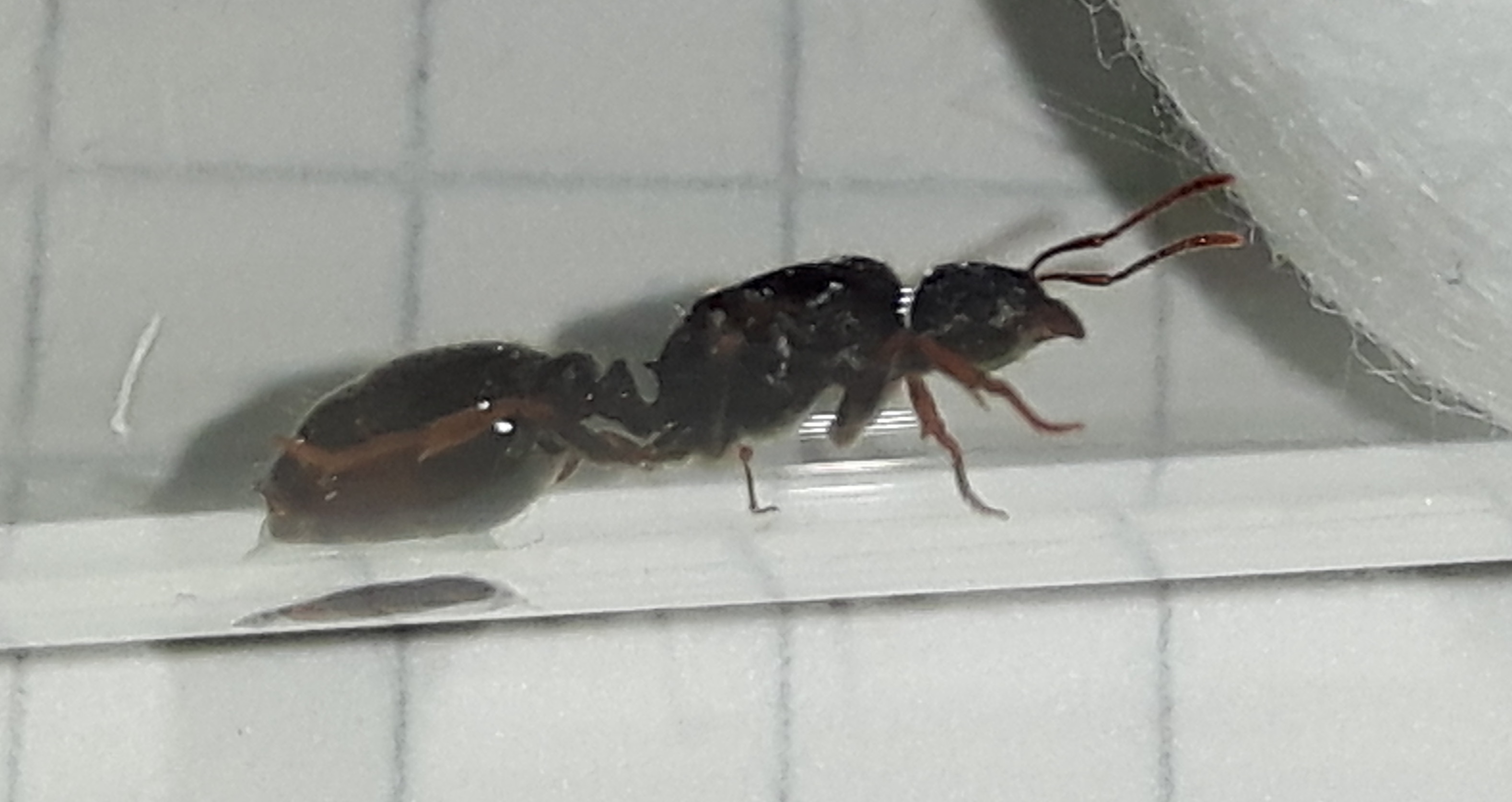 Trovata oggi alle 16.00, tempo : nuvoloso, luogo: cortile di casa. Ritrovato questo esemplare al suolo che vagava ed uno ancora alato, ormai defunto, in una ragnatela. I quadretti misurano 0,4 cm.