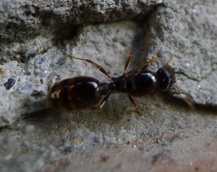 Oggi visti nello stesso luogo anche un'altra regina attera (al suolo) e, sulle pareti, due con le ali, oltre a due ndividui alati che ho dato per maschi (i primi che osservo; erano molto più corti ed esili delle regine, e più rapidi nei movimenti).