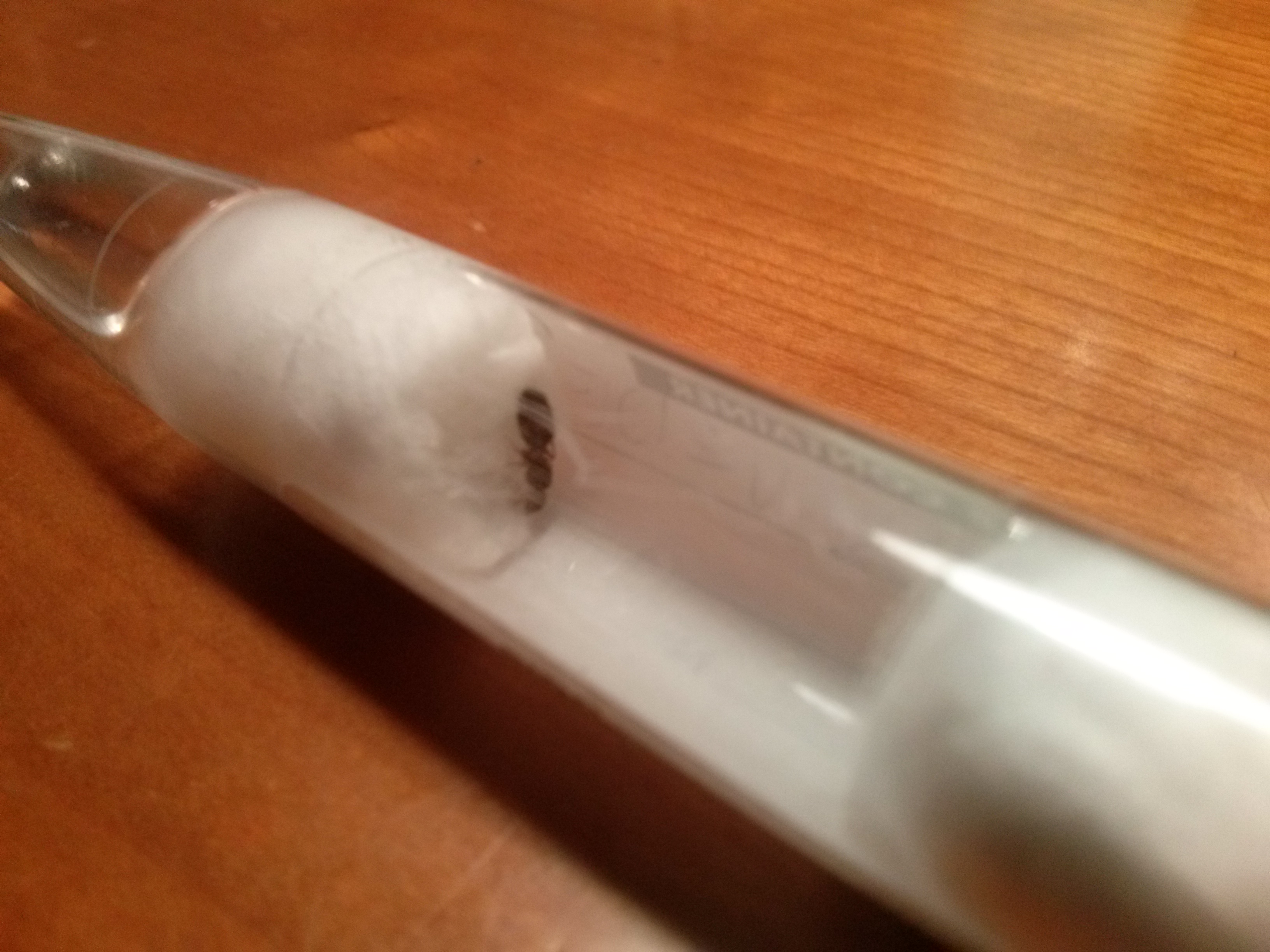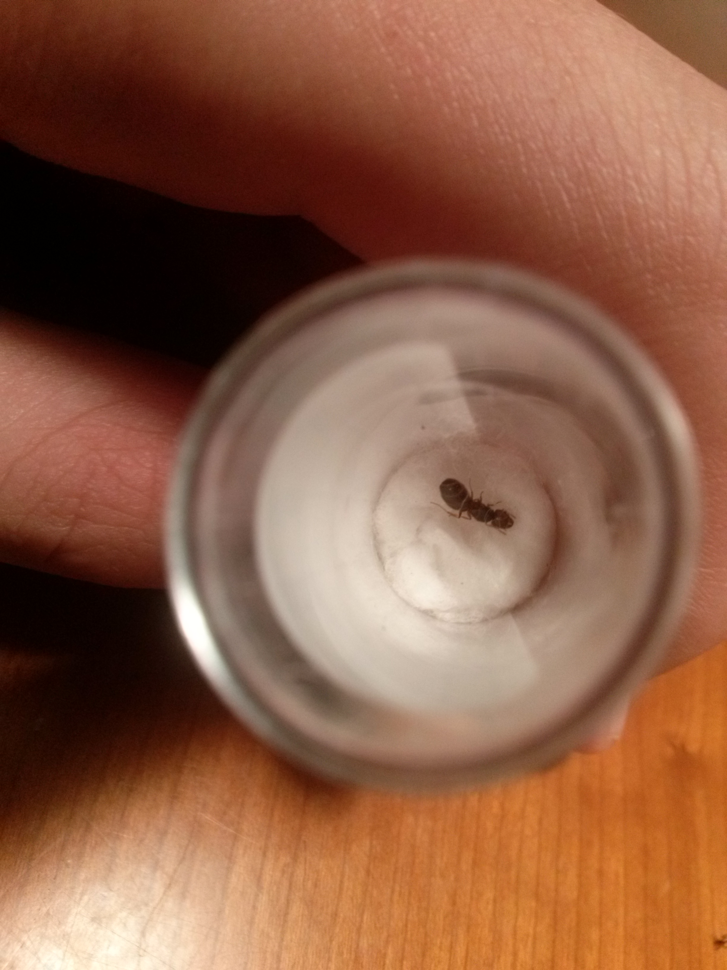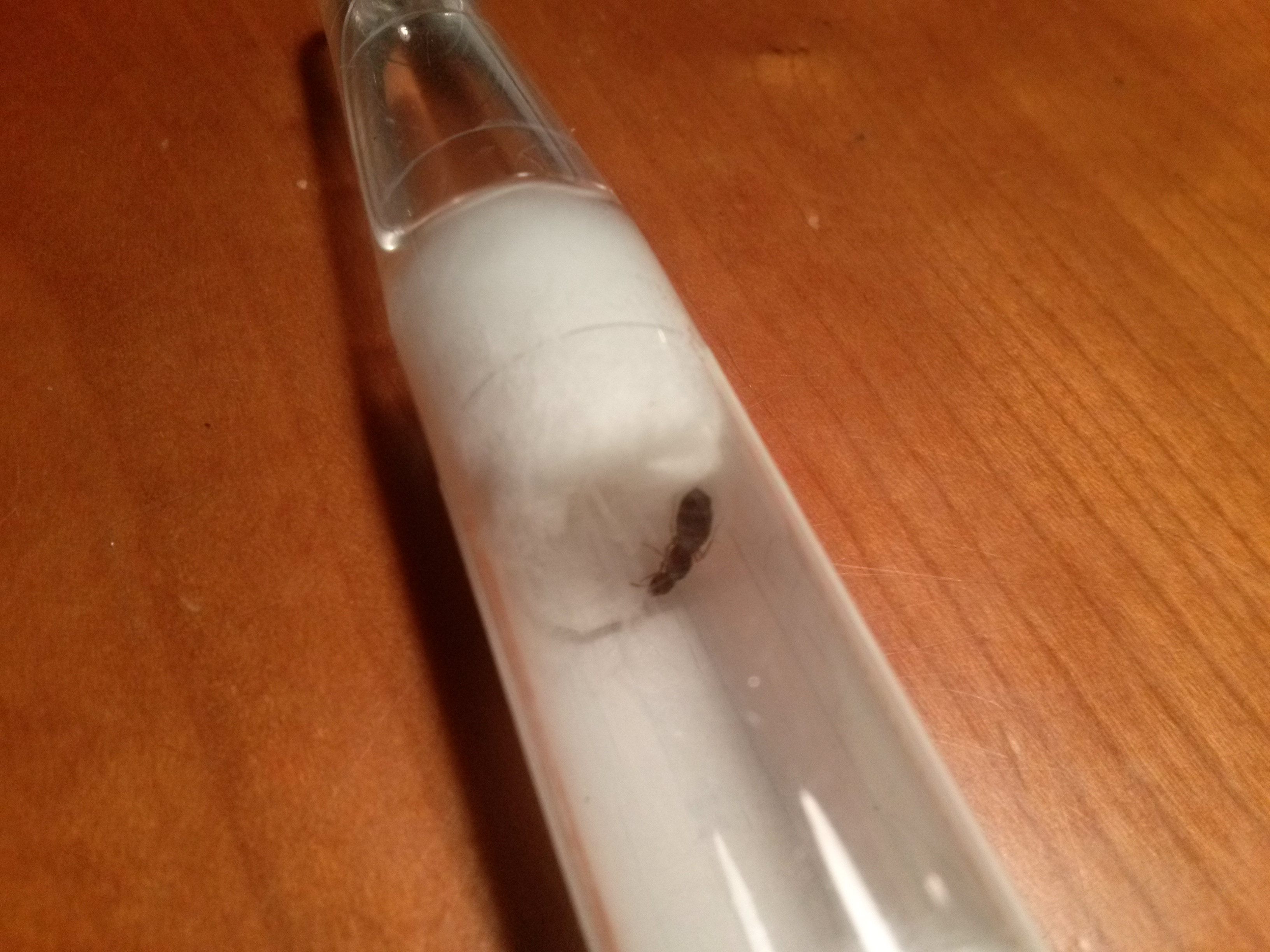 Intanto però ti direi di rifare la provetta perchè è fatta male: lo spazio per la regina è enorme, la riserva d'acqua minuscola e quasi vuota, inoltre il cotone sembra completamente asciutto!