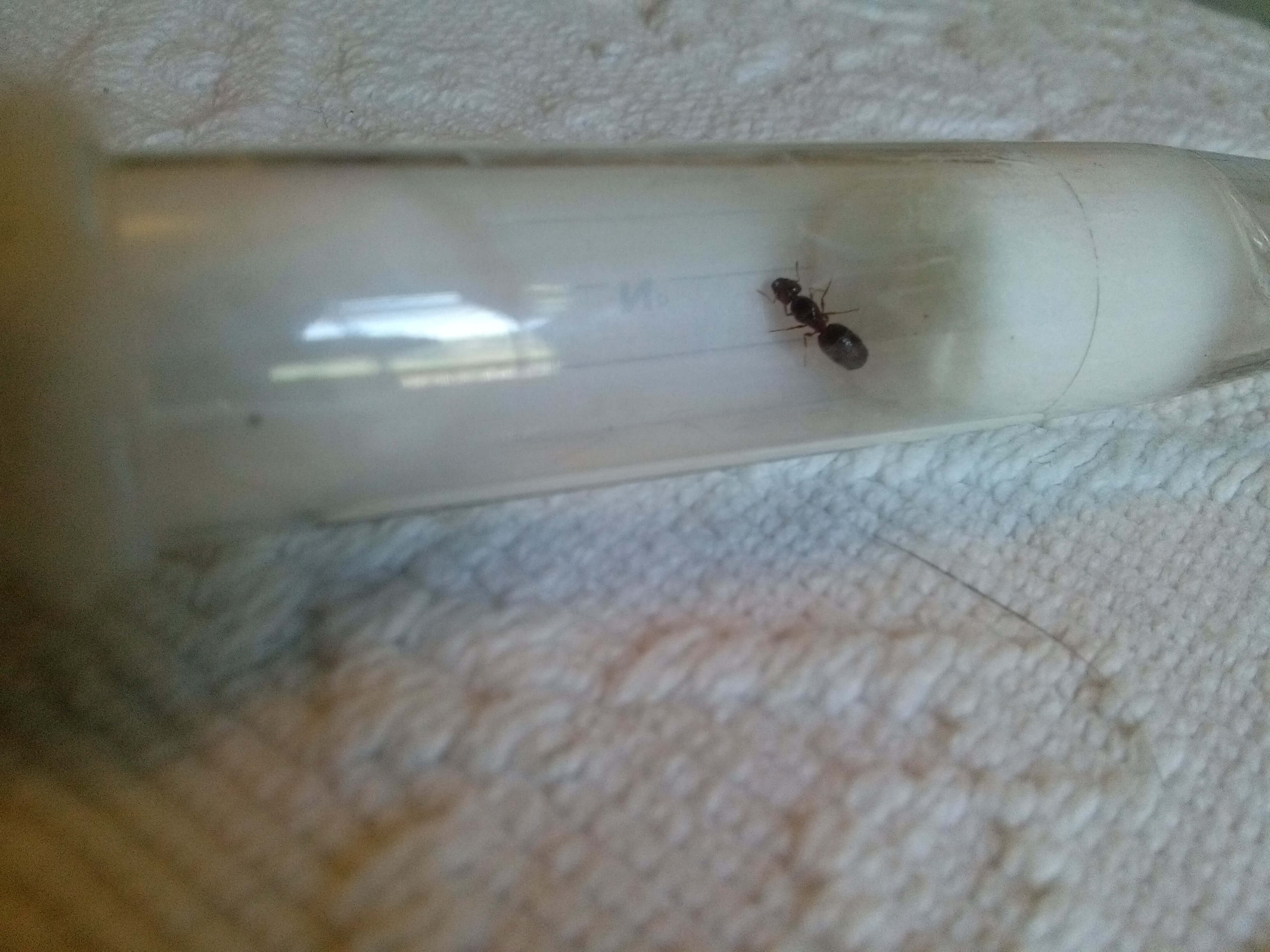 Non l e lasius sp ,ne ho 3 e molto diversa ,la provetta l ho presa solo per catturarla ma adesso la sistemo