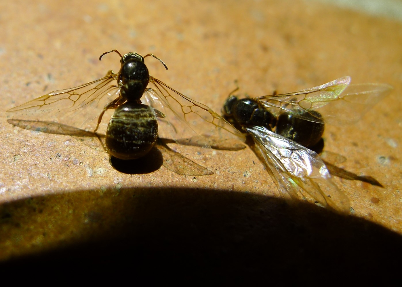 Non mi sembra siano uguali alle altre regine che ho visto in giro contemporaneamente e che ho pensato potessero essere Lasius emarginatus, queste mi pare abbiano il torace del colore del resto; Cremona, 28 giugno 2016, trovate morte alla base di un muro rivolto a sud.