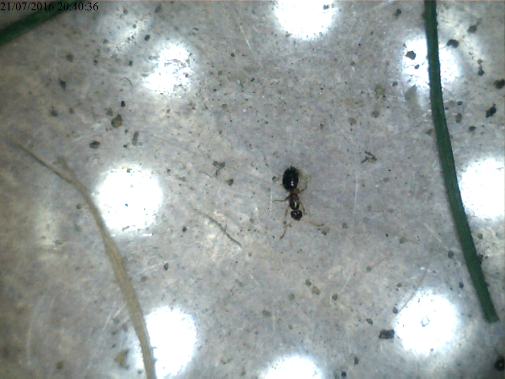 Scusate per la pessima qualità della foto, ma non sono riuscito a fare di meglio (è una formica dalle dimensioni veramente minuscole e non sta ferma un secondo). Il torace è di colore tendente al rossiccio, così come il capo, mentre il gastro è di colore bruno.