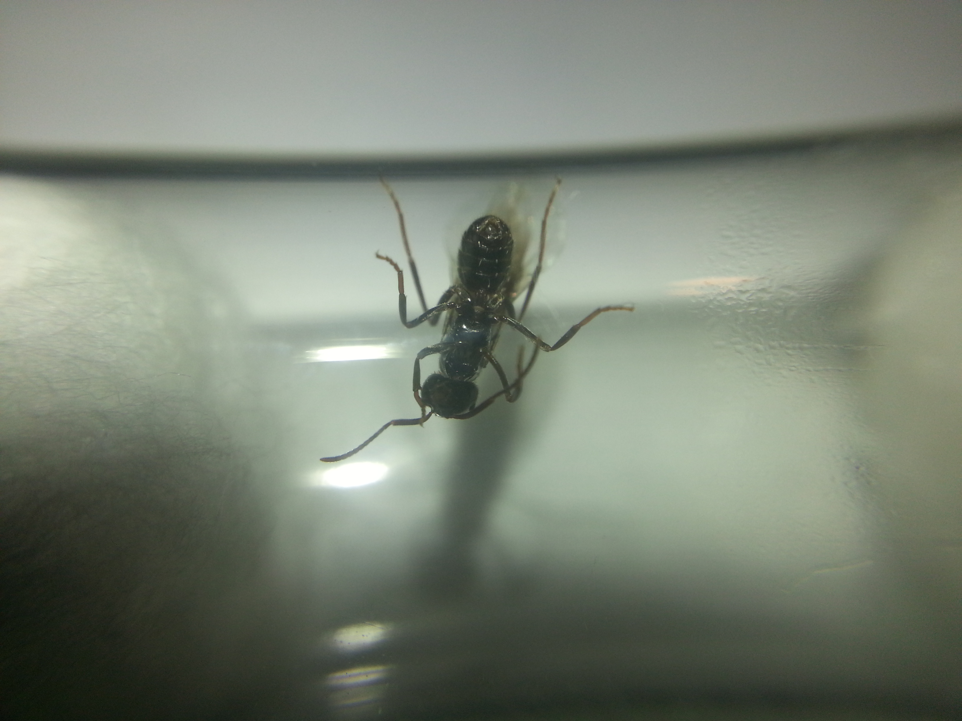 Comunque oltre le ali (che tra l'altro non sempre abbiamo), la regina del fuliginosus è francamente picea (mentre le regine degli Chthonolasius sono più o meno scure, ma non picee come quelle del fuliginosus), la testa ha una forma molto particolare a cuore e, uno dei caratteri con cui di solito mi aiuto nel caso di brutte foto, è la lunghezza delle zampe, soprattutto quelle posteriori, che nelle regine di fuliginosus sono davvero molto lunghe.