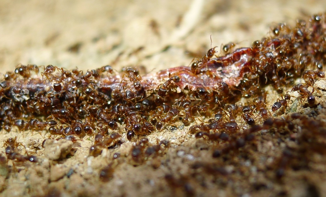 Mi sembra che queste Tetramorium (giusto?) si caratterizzino per avere, in maggioranza, testa e addome più scuri delle parti mediane (torace, zampe, peziolo). Può essere un indizio che fa pensare a qualche specie in particolare?