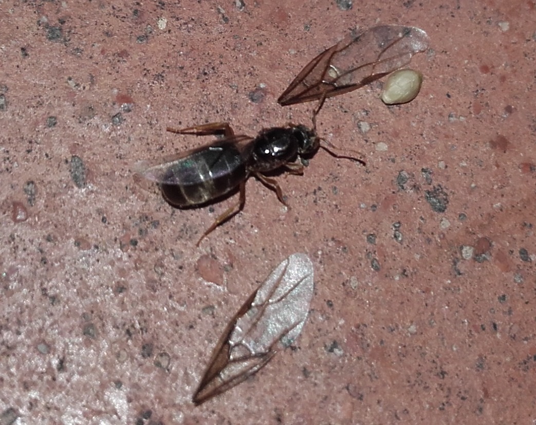 Ieri, nel tardo pomeriggio, all'avvicinarsi di un temporale sono comparse nel cortile di casa (periferia di Cremona) diverse regine, alate e non, che mi sembravano uguali fra loro
