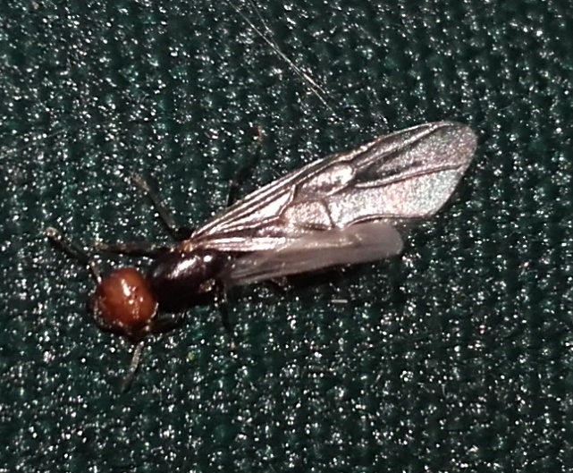 Purtroppo la macchinetta digitale mi è defunta e devo ricorrere al solo telefonino, che uso come posso; spero che lo schema di colore sia sufficiente ad identificarla, a me, dal vivo, faceva venire in mente Crematogaster scutellaris, era bella grande, secondo me sui 7 mm.