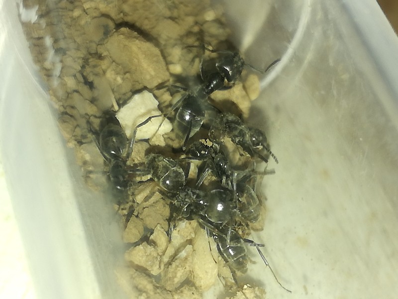 Le seconde dovrebbero essere delle Tapinoma erraticum ma vorrei un accertamento, oggi ho tirato su un masso sopra il loro nido e sotto ho visto alcuni maschi e, pupe di regine, è possibile? Come faccio a catturare una regina per allevare questa specie?