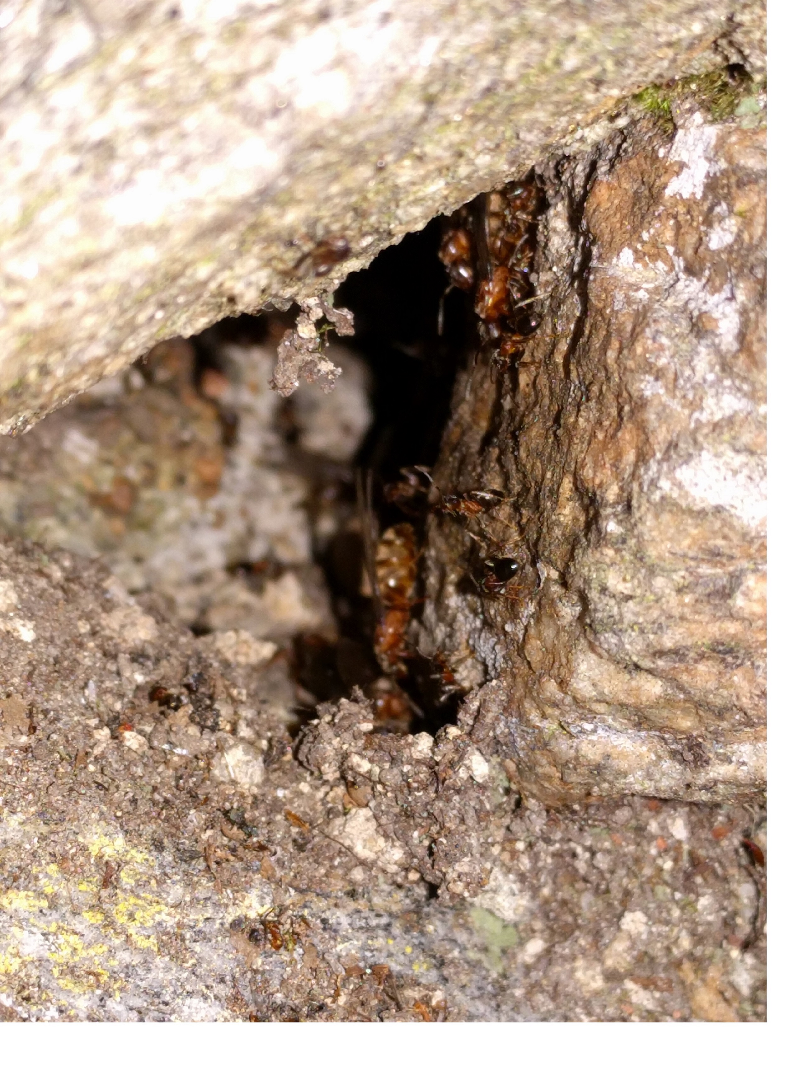 è da un po' che tengo d'occhio questo formicaio ,si trova nelle fessure di un muretto esposto a est,di giorno non si vede nulla,se non un paio di operaie,la sera invece escono tutte da dove ho fatto le foto sotto. Lo tengo d'occhio perchè ho beccato degli alati,anche fuori,ma che appena disturbati dalla luce rientrano,e ieri sono riuscito a fotografarli. Sapreste dirmi cosa sono?