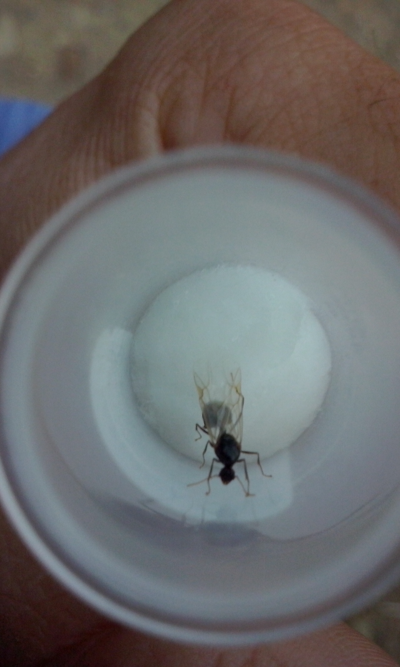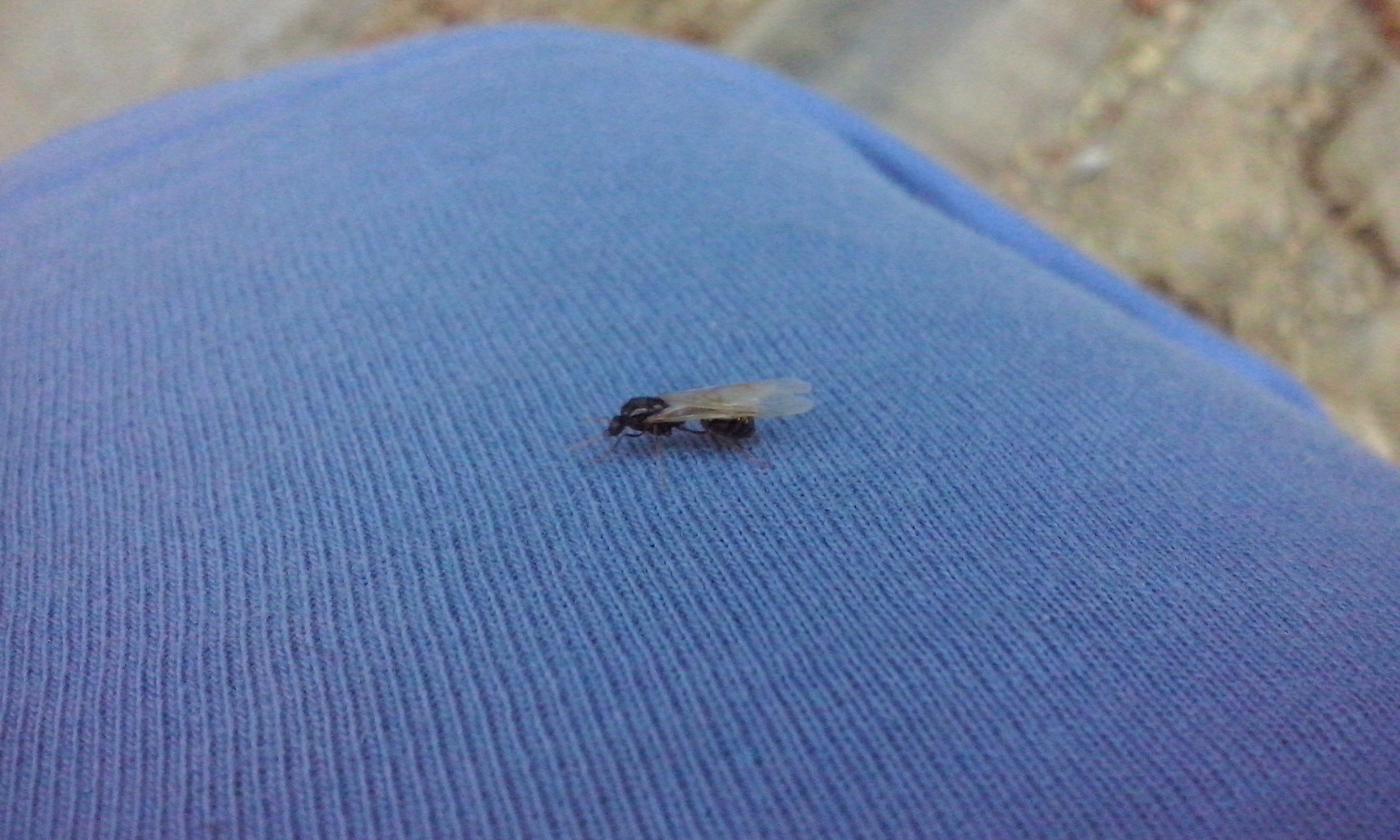 Alle 21 circa di questa sera ho trovato questo esemplare alato al suolo. La forma dell'addome mi ricordava quella delle regine di Tetramorium, ma la testa era molto piccola e il torace gibboso. Ho pensato a un maschio di qualche altra specie e l'ho subito liberato.