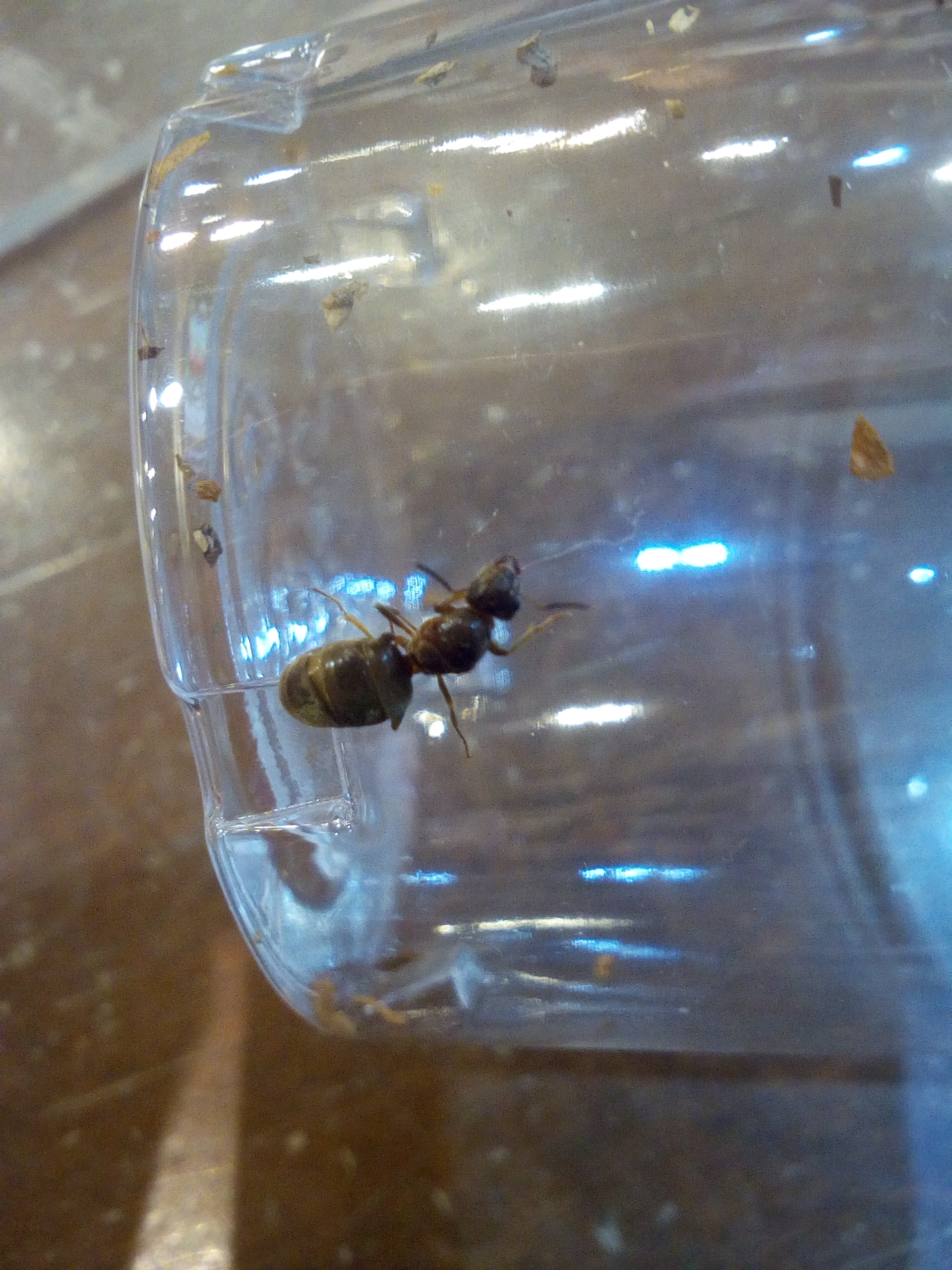 Ieri sera sulle vetrine del mio negozio si erano date appuntamento un infinità di formiche per la loro consueta sciamatura. Avendo già 1 formicaio in crescita e altre due regine ancora agli inizi avevo deciso di ignorarle. E' stato tutto inutile però, oggi dentro il negozio mi sono trovata questa. Con chi ho il piacere di fare la conoscenza? Grazie