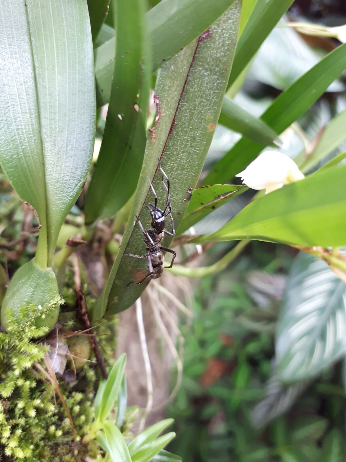 Il primo è una cosa bellissima! Non è una formica, ma un ragno Corinnidae, Sphecotypus niger, che imita le Neoponera villosa.