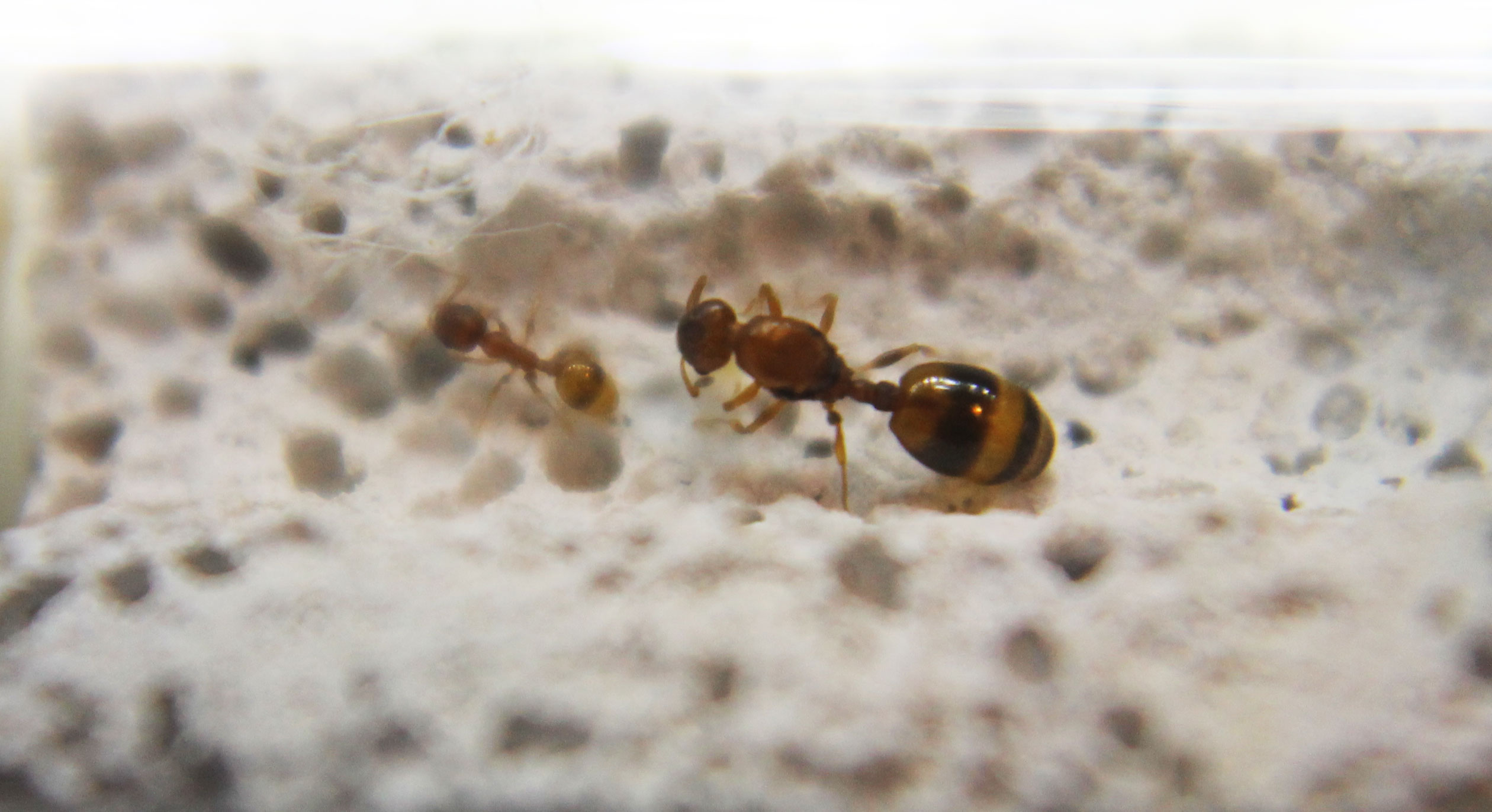 Secondo la mia esperienza con le Themnotorax arboricole, la soluzione dei mini nidi in sughero è sempre stata la migliore. Adesso la colonia è proprio minuscola, quindi va bene la provetta. Io le ho sempre allevate partendo da una provetta chiusa senza nessun substrato, trasferendole poi in una arena in piccoli quadrati di sughero con una o due stanze al massimo, chiusi da un coperchio di plexiglas come tetto per la visuale. Il tutto sollevato tipo palafitta da dei piedini di legno o stuzzicadenti, con la provetta per l'acqua sotto.