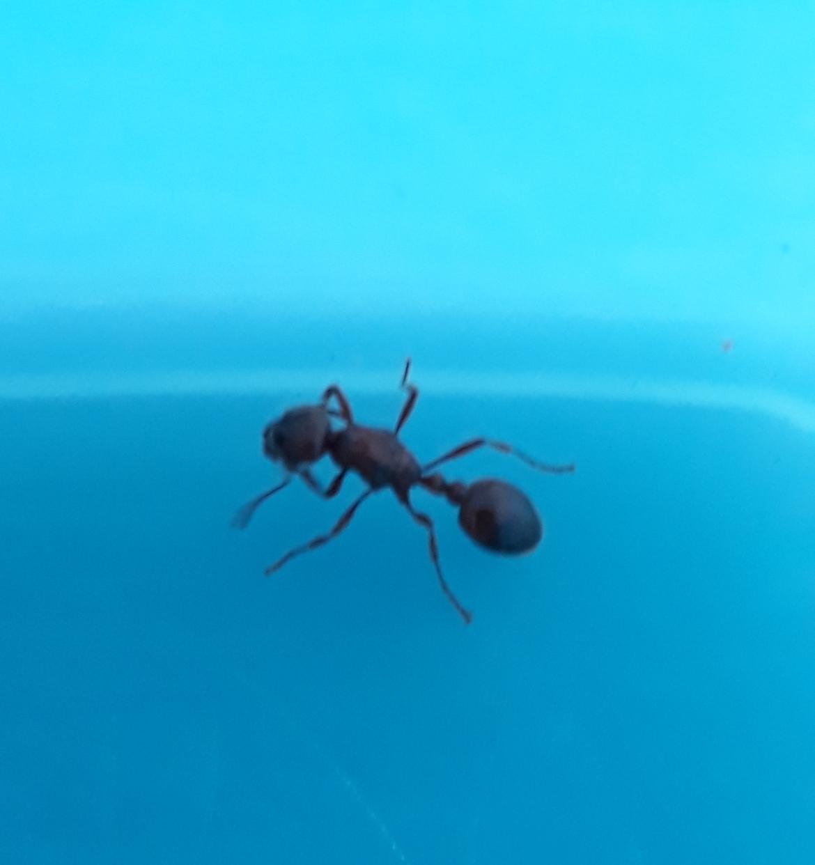 Myrmica sp.?, speravo Manica rubida, visto che qui ce ne sono tante. il colore é uguale a quelle del post id operaie che ho scritto alcuni giorni fa, rosso fino ad un terzo del gastro e del capo, poi scura e con la lente si vedono bene dei frammenti d'ala. Girovagava per il piazzale e confrontandola con le altre, é uguale, solamente tre millimetri piu grande