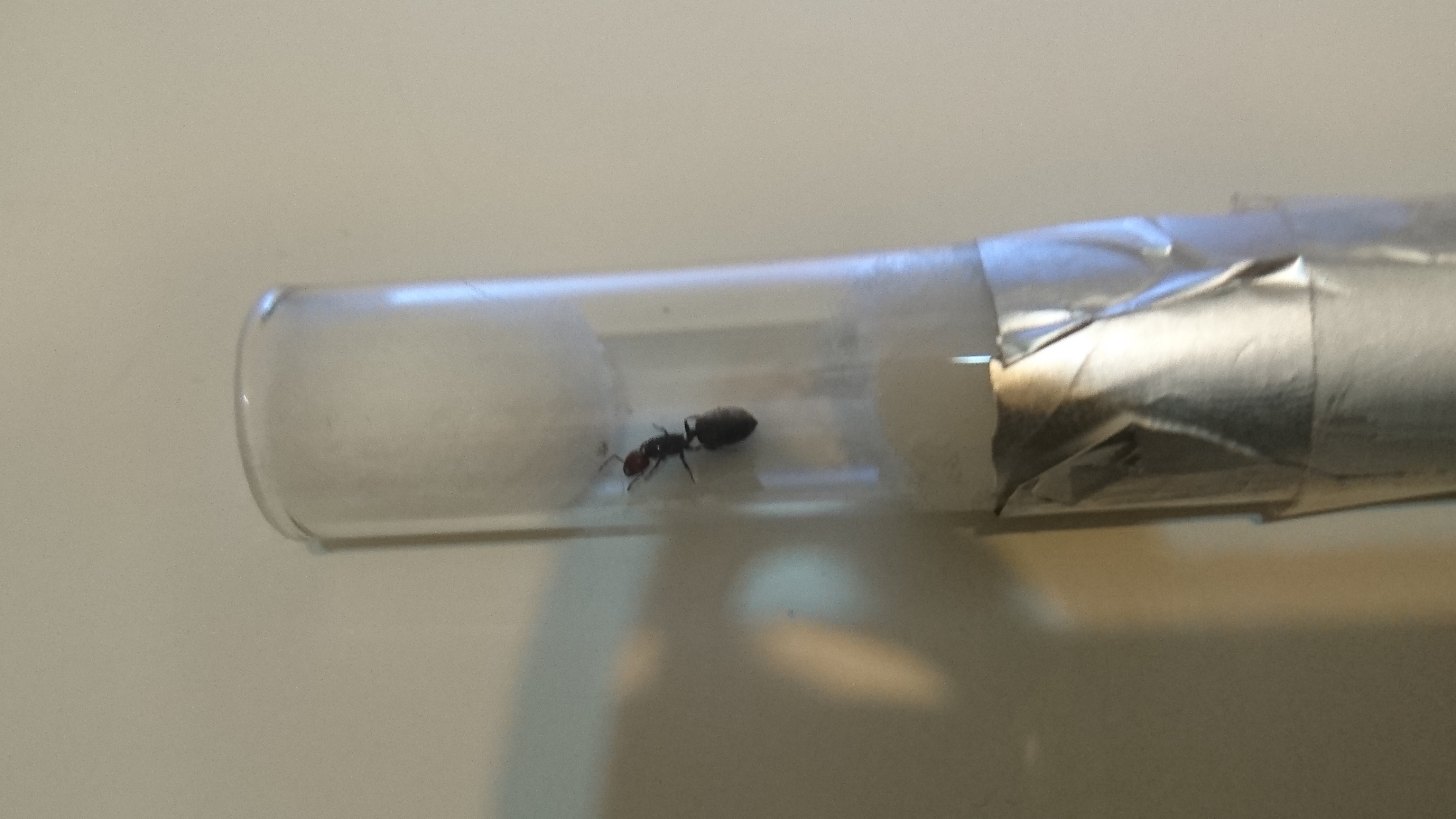 Salve, una sera all'inizio del mese ho trovato questa regina che volava sulle scale di casa (a Roma), probabilmente è entrata nel palazzo dal lucernario aperto. L'ho messa in una provetta di plastica che avevo a portata di mano e la sera stessa si è dealata. L'altro ieri l'ho spostata in una provetta di vetro ed è stato sorprendentemente facile, ho collegato le due provette con della pellicola (non mi fido della colla del nastro adesivo) e ho coperto quella nuova con della stagnola e in meno di un minuto si era spostata nella provetta di vetro.