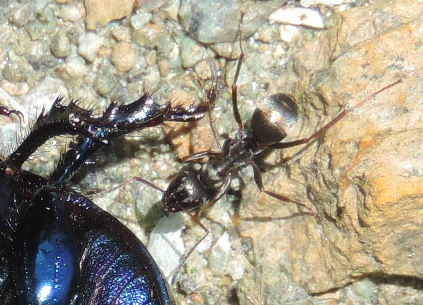 Fotografata nei pressi del Colle della Lunella (TO) il 10 giugno 2017, a circa 1400 metri di quota, era interessata ad un Geotrupidae moribondo sul sentiero, che Formica sarà?