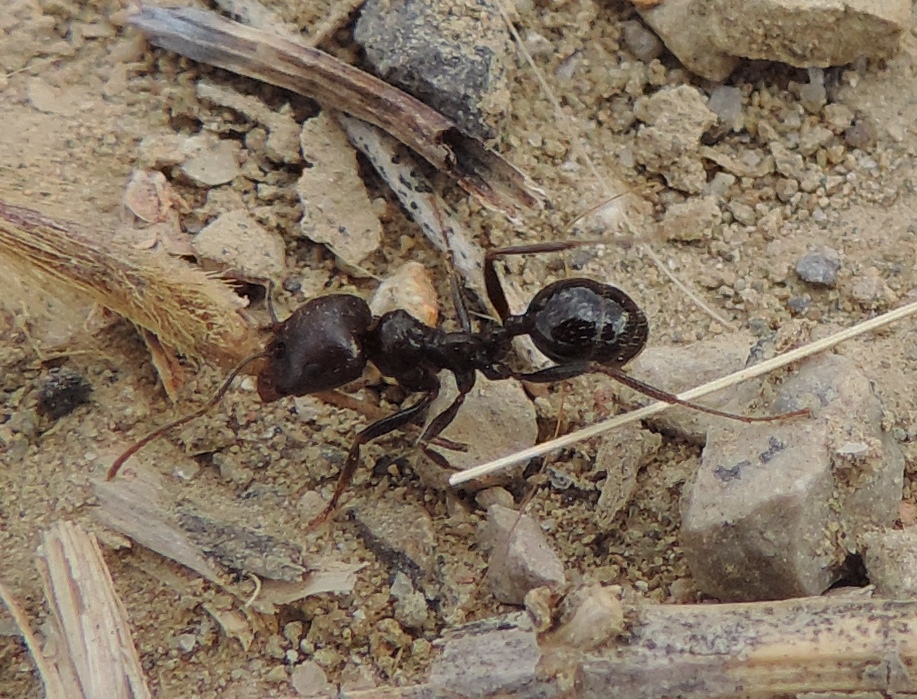 Fotografata nella campagna poco fuori la città di Lleida, nella regione spagnola della Catalogna, il 5 agosto 2017. Potrebbe trattarsi di Messor barbarus?
