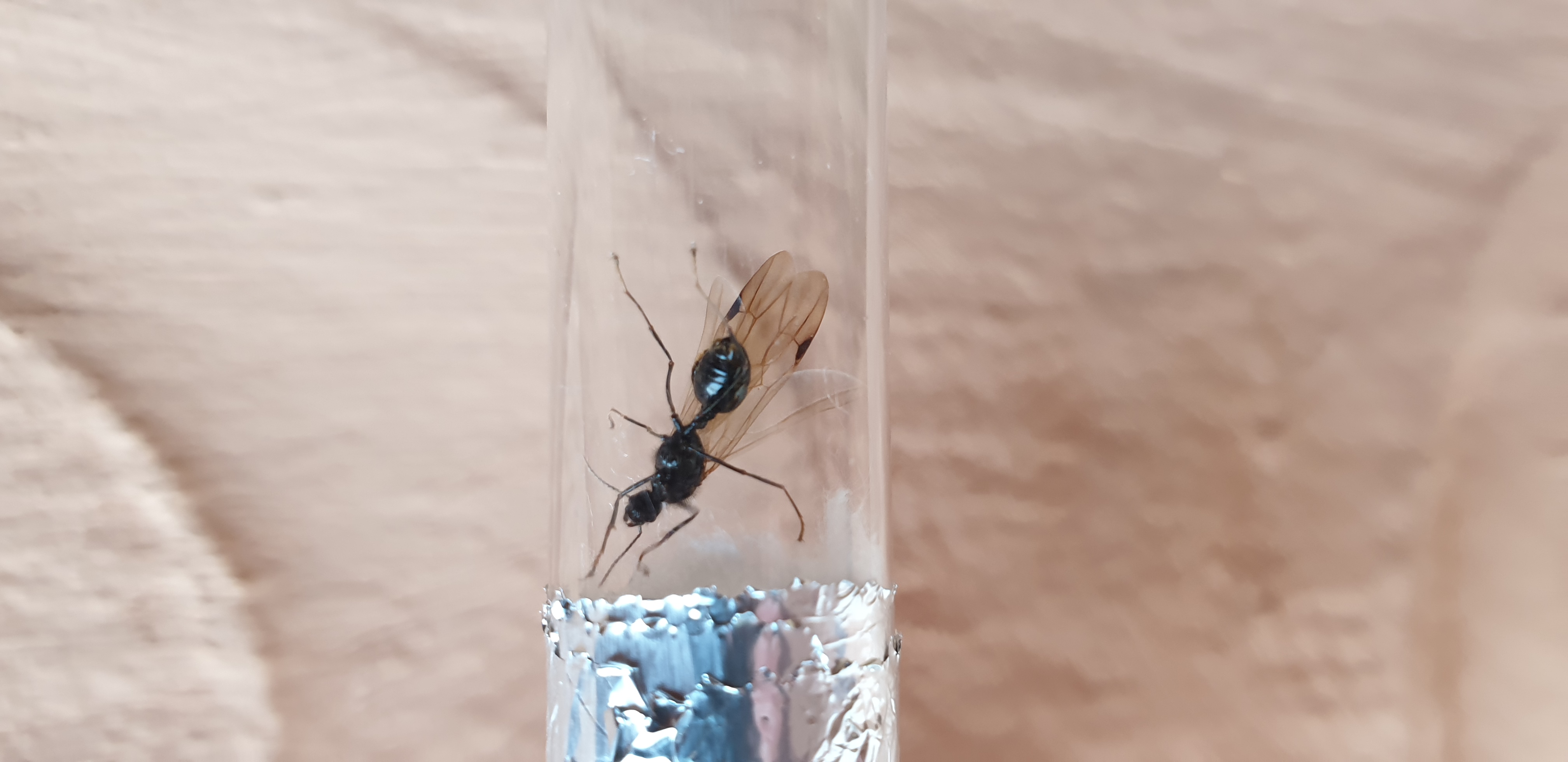 Ciao a tutti, mi potreste aiutare con l'identificazione di queste 2 formiche? La prima sono convinto sia una formica ed anche regina...ma ho forti dubbi su quella alata...mi potete aiutare per entrambe? Grazie. Le ho trovate entrambe nel sud della Sardegna dopo un bel temporale. Quella alata sarà 8mm mentre l'altra è 1 cm. Grazie!!!!