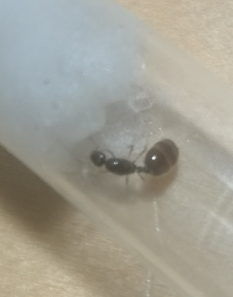 salve a tutti mi sono appena iscritto a questo forum e vorrei già chiedervi se sapreste riconoscere la specie di questa formica e anche se confermate sia una regina, è stato tutto molto veloce, ero sul terrazzo ho visto questa formica diciamo "diversa" dalle altre soprattutto per l'addome, non ci ho pensato due volte e l'ho messa in provetta. (sono di Roma)