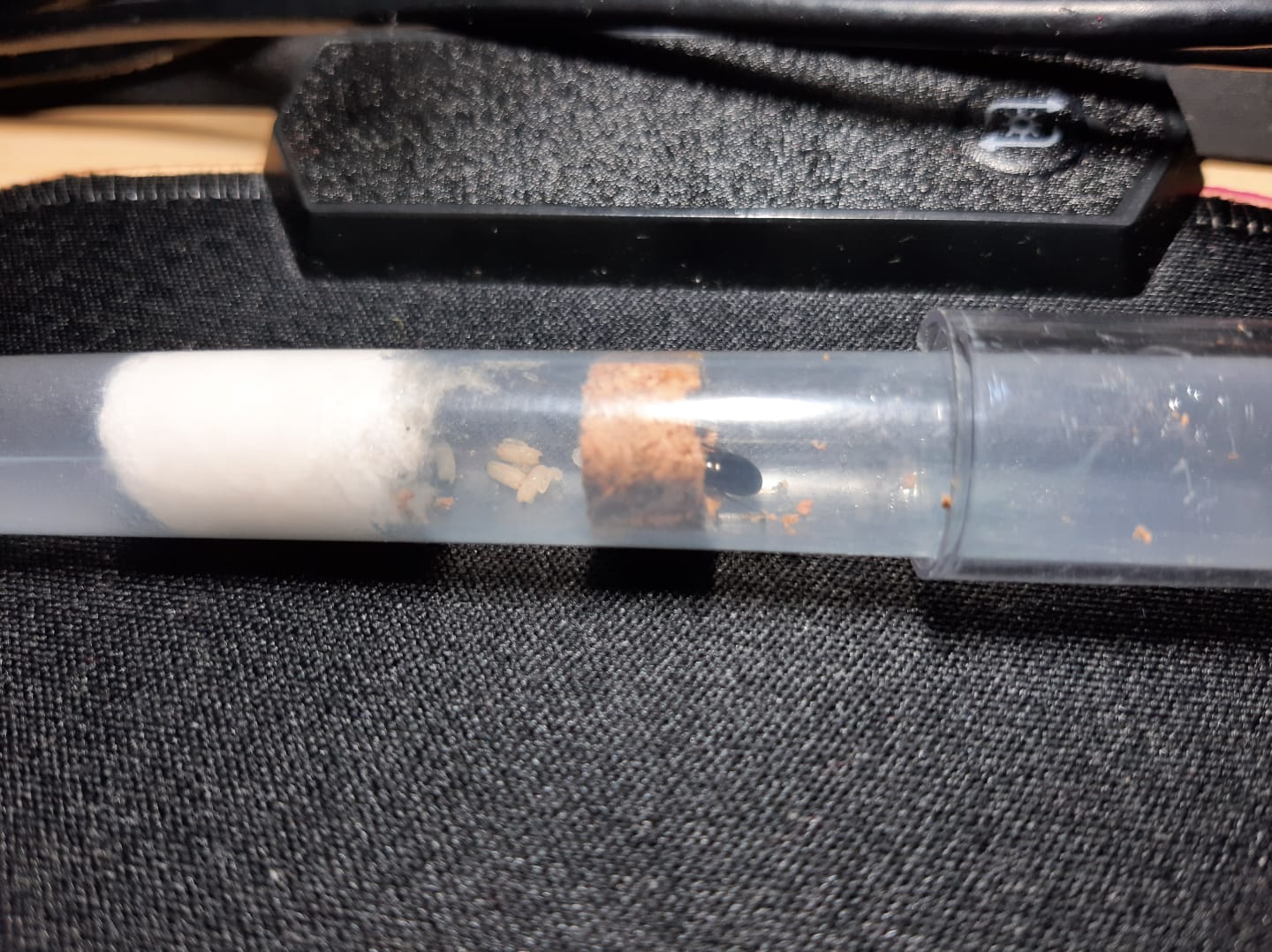 Per ora potresti mettere un batuffolo di cotone piccolo nella provetta impregnato d’acqua e lo continui a bagnare, ho visto dei bozzolo quindi tra pochi giorni saranno le operaie a prendere l’acqua che gli serve.