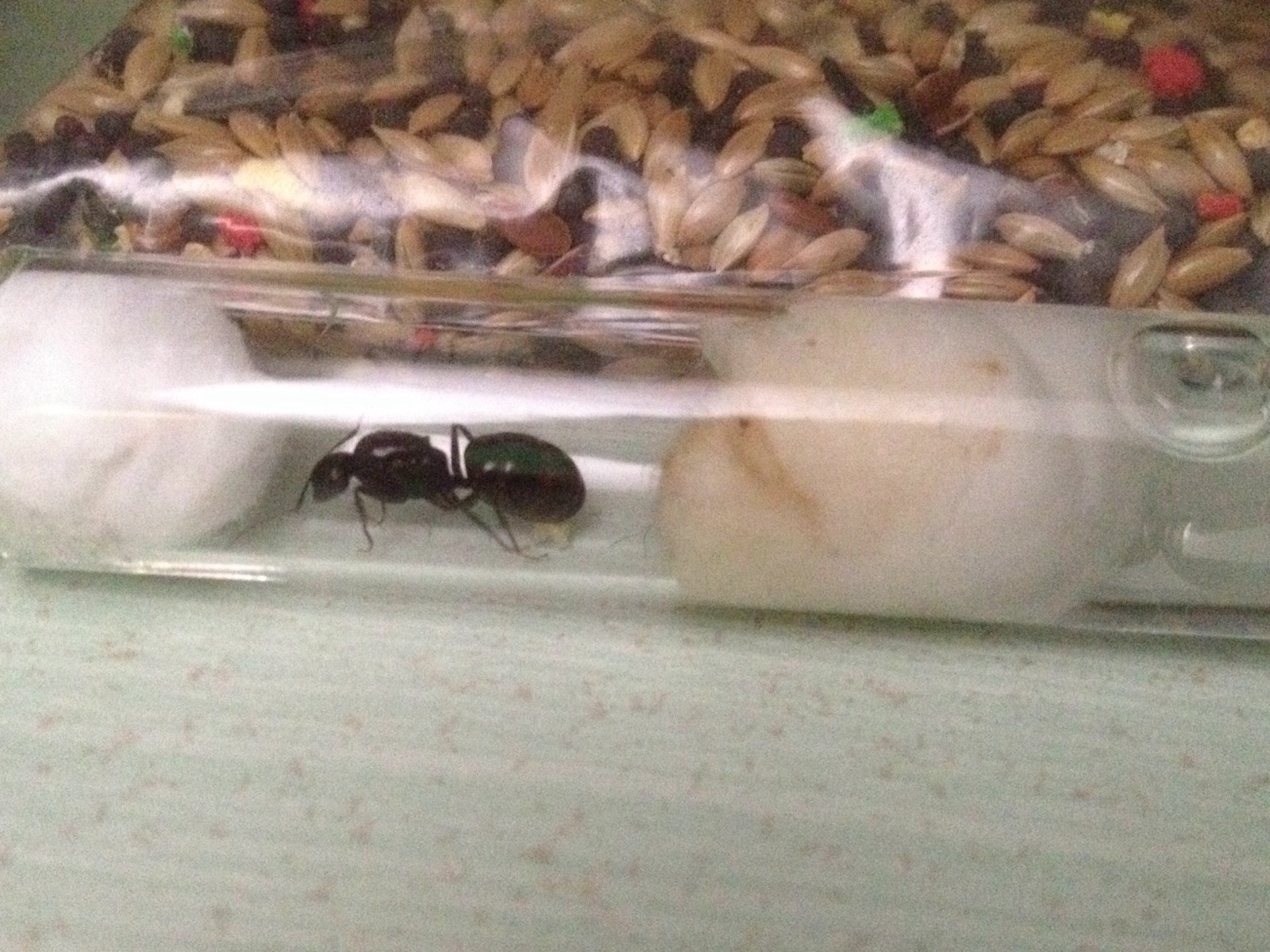 Come avevo accennato in un post dove avevo avuto un problema col miele avevo detto che avrei messo qui una foto della regina di Camponotus sp. che ho regalatami da un mio amico. La foto non è il massimo lo so è che purtroppo in provetta è un miracolo farla decentemente… posso solo dirvi che è completamente nera compreso il gastro che non ha sfumature rossicce ecc…secondo voi cos’è?