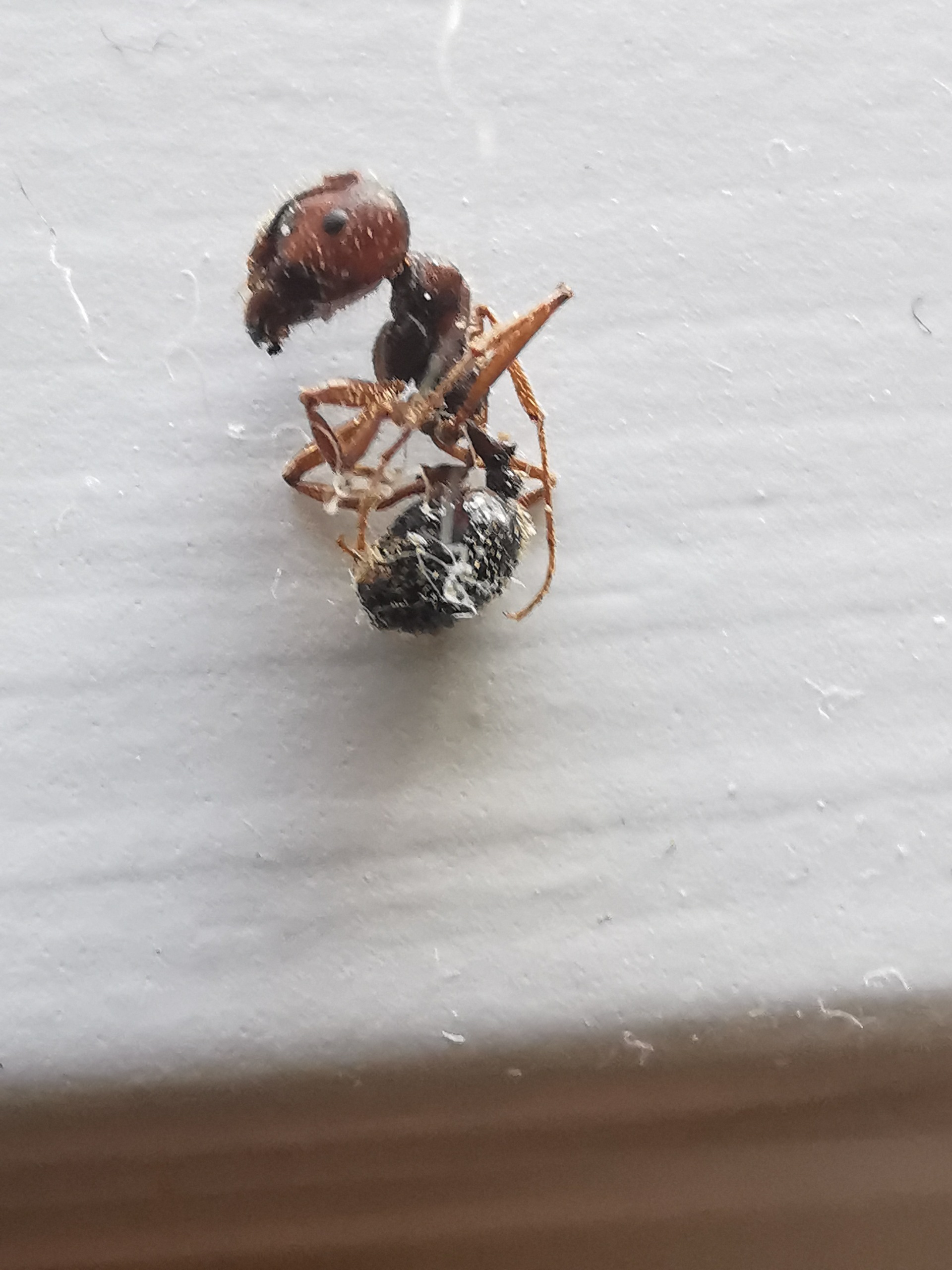 ho chiesto identificazione tramite un app e mi parlavano di una specie non autoctona : Pogonomyrmex rugosus , ma è presente in nord america ,