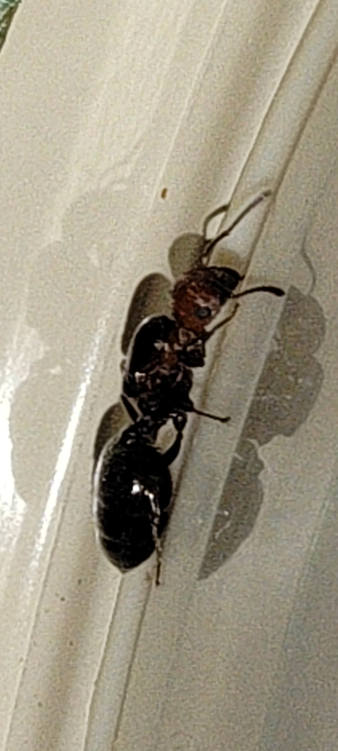 Buonasera, proprio ieri ho trovato sotto casa mia una regina di Camponotus nylanderi. Oggi quasi nello stesso identico posticino di ieri ho trovato questa altra presunta formica regina più piccola di cui allego le foto. La formica presenta il corpo nero e la testa di un rosso intenso e leggermente scuro, è lunga circa 8 mm (molto più piccola rispetto alla regina di ieri). Mi trovo in Sicilia orientale in pianura/bassa collina a circa 40 metri sul livello del mare (se può essere utile il mare dista un km e qualcosina da qua). Spero possiate aiutarmi, e spero pure che sia effettivamente una regina. Buonaserataaaa