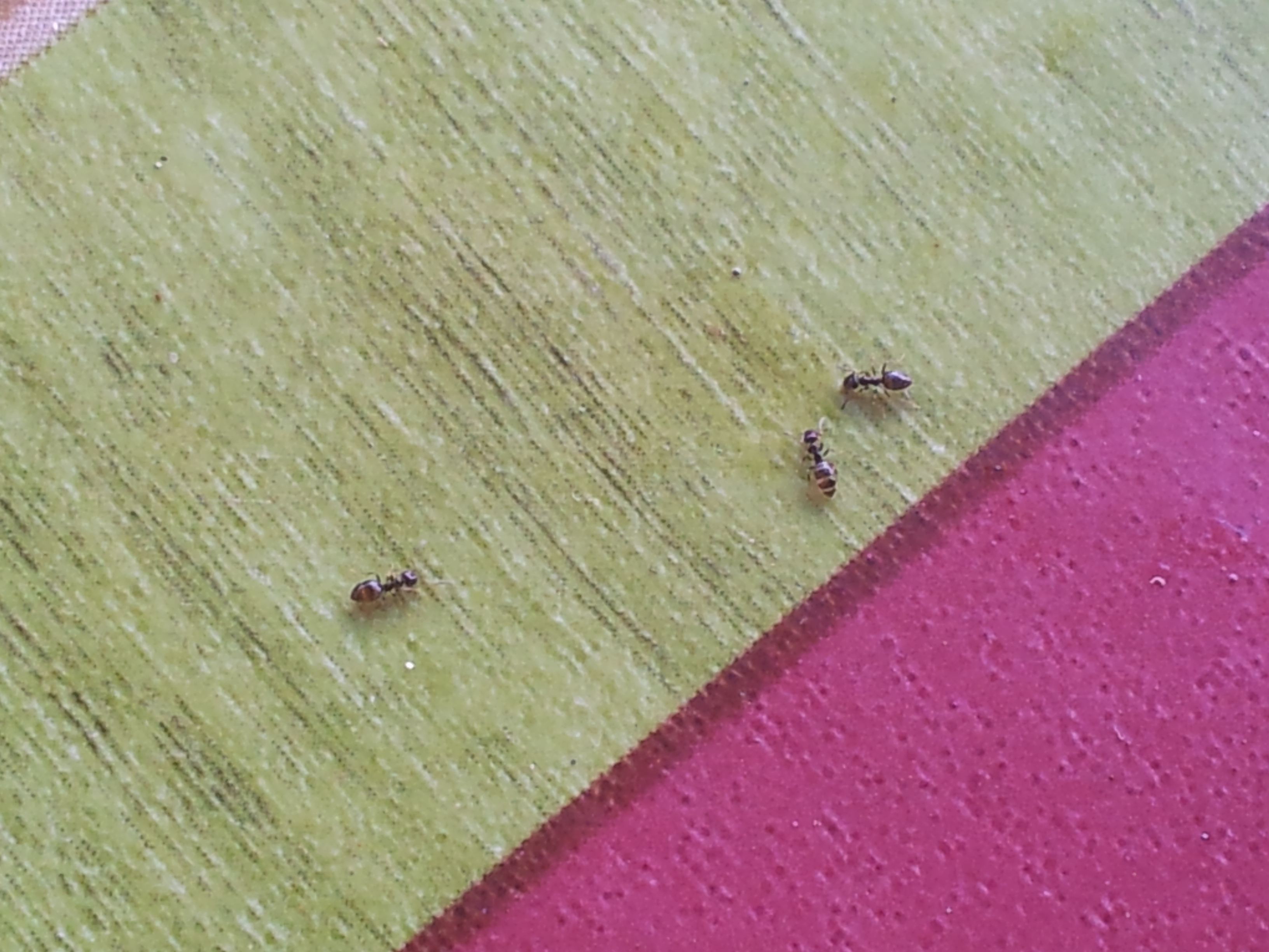 L' unico modo per scoprire se sono Crematogaster oppure Plagiolepis è tornare sul posto e infastidire le operaie se alzano il gastro sono Crematogaster se non lo fanno sono Plagiolepis quando non si arriva all' identificazione con la tassonomia spesso ci si può arrivare con il comportamento.