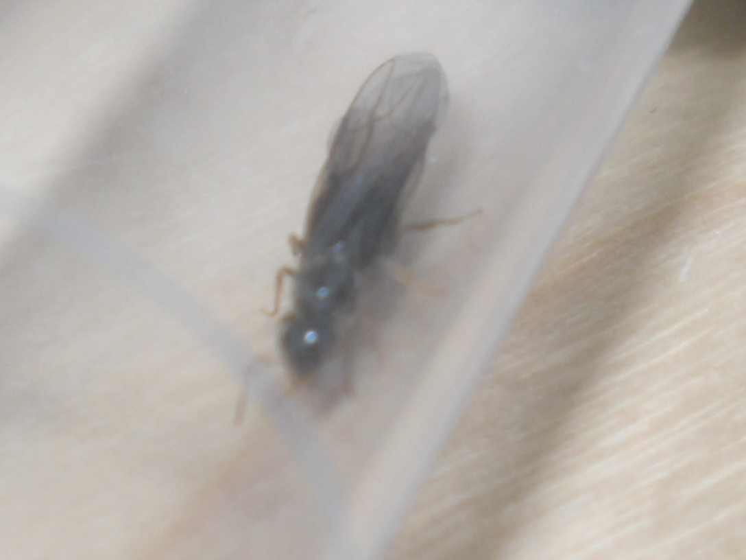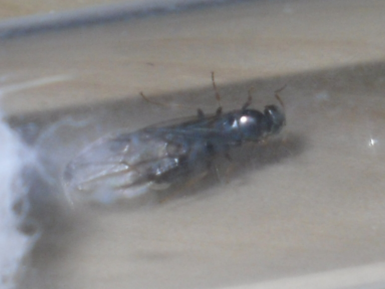 Ovviamente quando la misuri non devi tener conto delle ali. La misura va presa dalle mandibole alla punta del gastro. Le ali sporgono un po' dietro al gastro. Per la goccia d'acqua basta che apri la provetta e con la punta di un ricciolo di cotone la assorbi. Please, altre foto ben a fuoco o non ci arriviamo