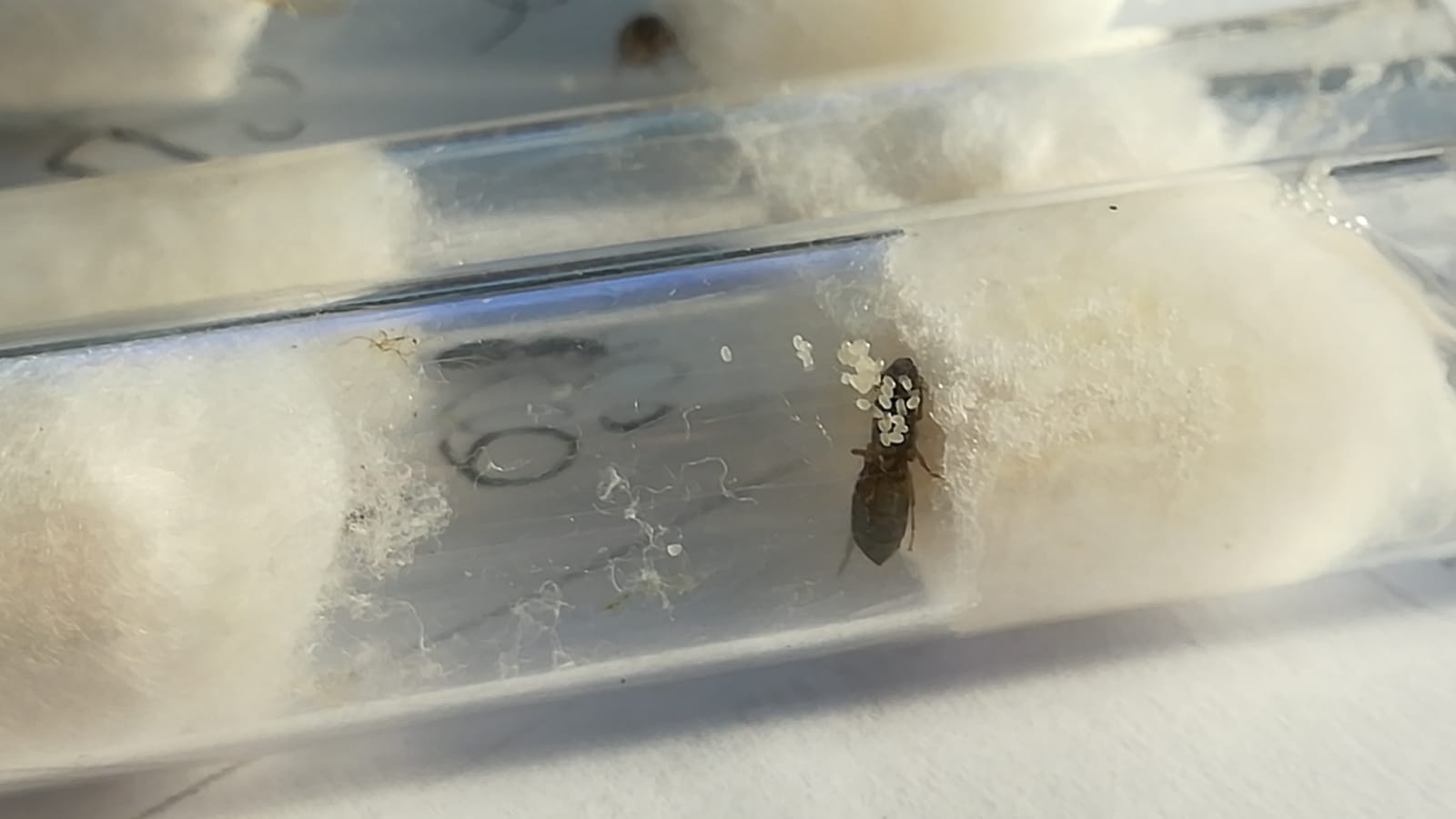 Lasius SP (regina) in fondazione con uova,larve (2025)