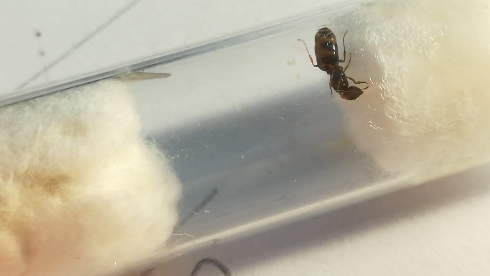 Lasius SP (regina) in fondazione con uova,larve (2025)